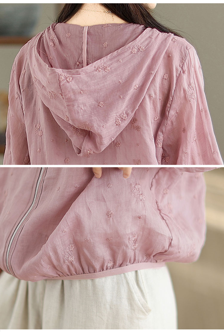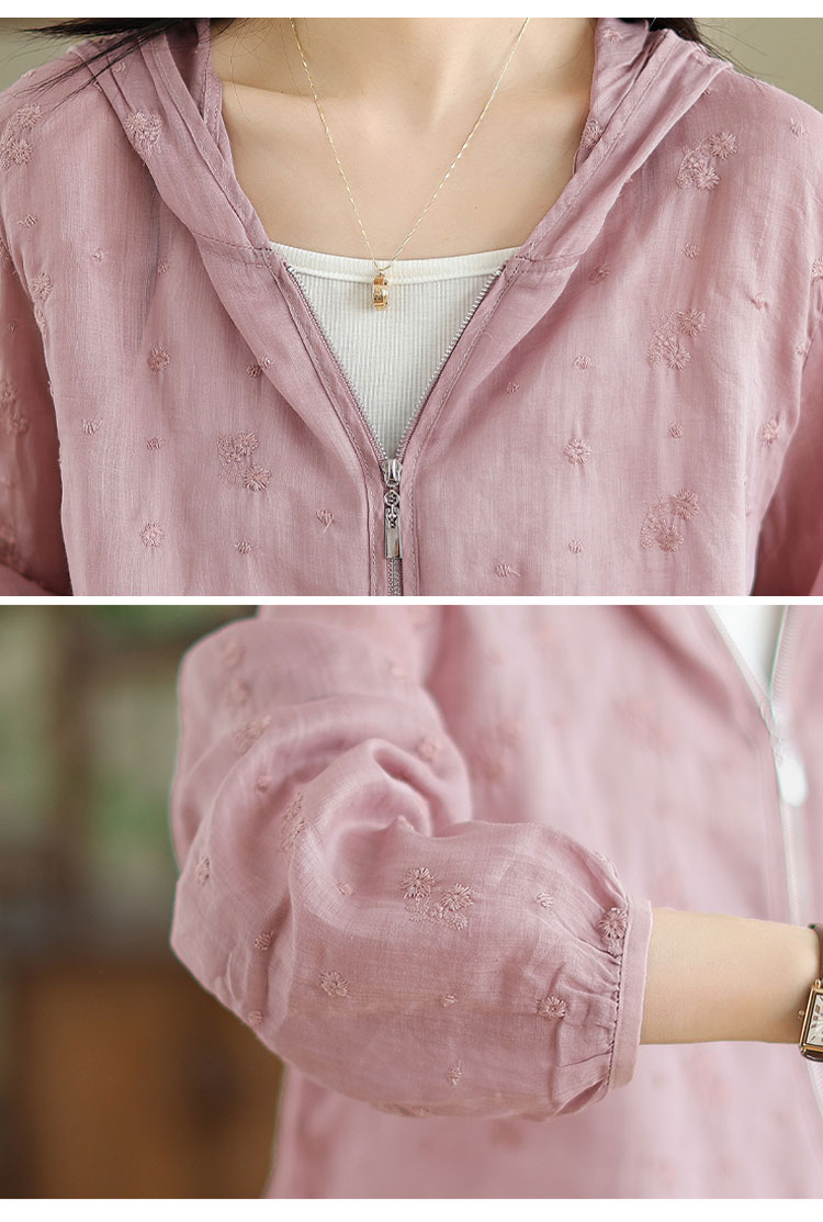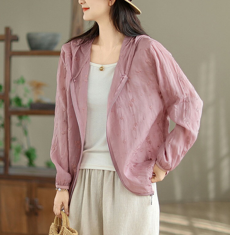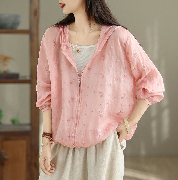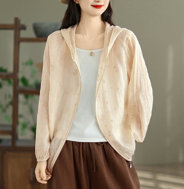 パーカー UVカット レディース 夏 フード付き リネン混 刺繍 リネンアウター ラッシュガード 春 長袖 薄手 ゆったり 長袖パーカー 透け感 カーディガン ライトアウター 日焼け防止 冷房対策 羽織り ショート丈 通気性 UV対策 トップス 夏用 涼しい ブルゾン 旅行 夏物 夏服