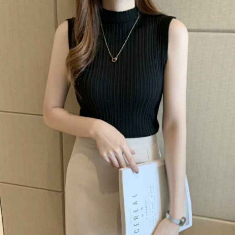 ノースリーブニット フィット トップス サマーニットベスト フィット リブ編み 全7色 タイト スリム ースリーブ 【送料無料】ハイネック ボトルネック 韓国風 無地 細身 きれいめ ベスト 薄手 フェミニン 通勤 20代 30代 ハイネック