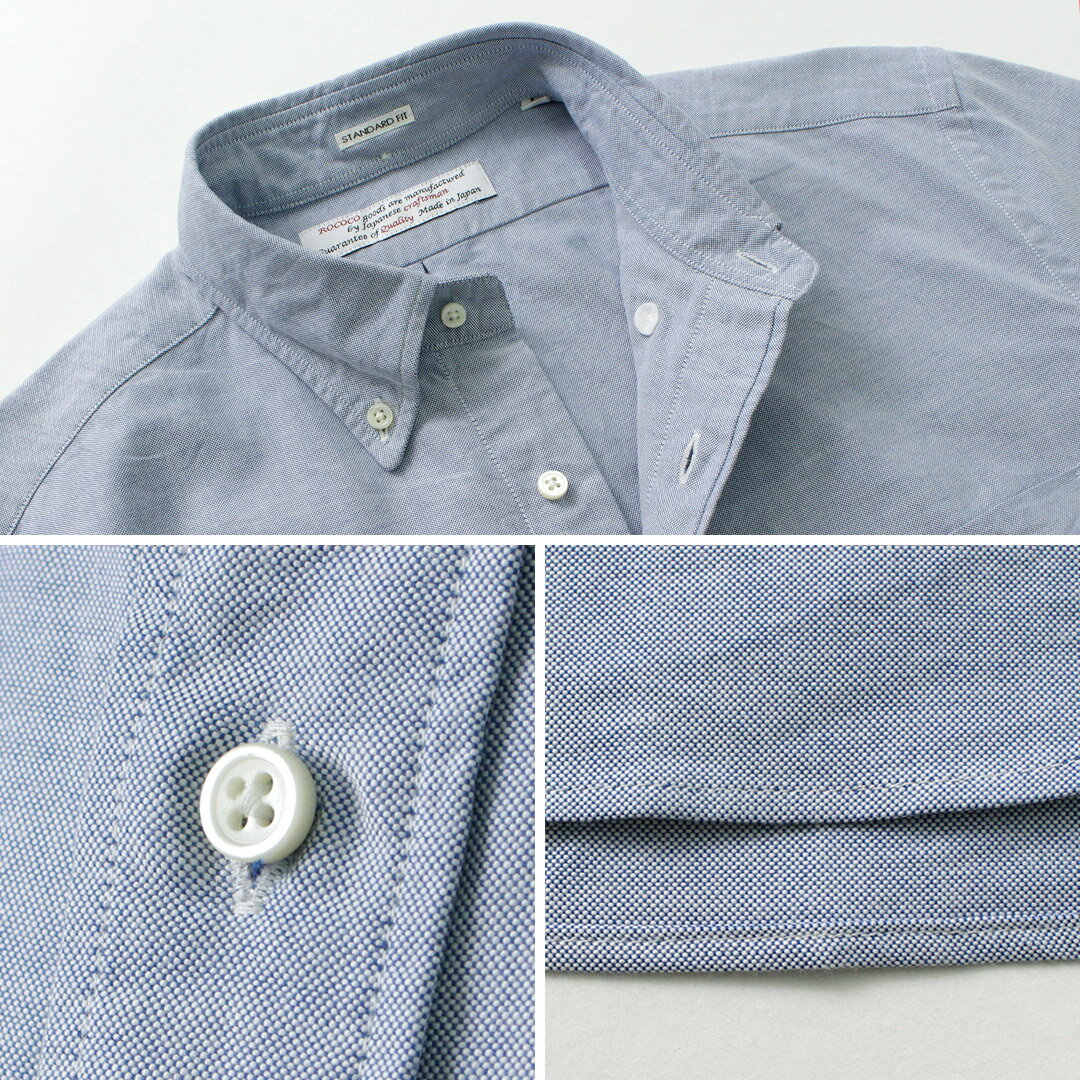 【30%OFFクーポン対象】ROCOCO(ロココ) プレミアムオックスフォード ショートスリーブ ボタンダウンシャツ / トップス 半袖 無地 スタンダードフィット スーピマコットン 綿 ビジカジ メンズ 日本製 / pl3