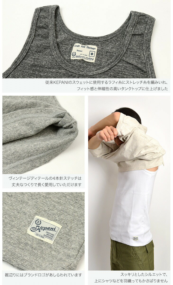 【セール品まとめ買いクーポン対象】【30%OFF】KEPANI(ケパニ) ラフィー スパン フライス タンクトップ / 無地 / ストレッチ / メンズ / 日本製 / KP9933MS【セール】