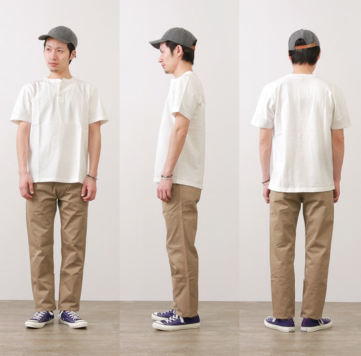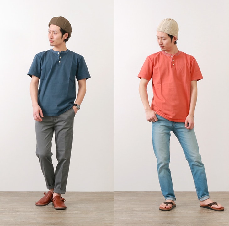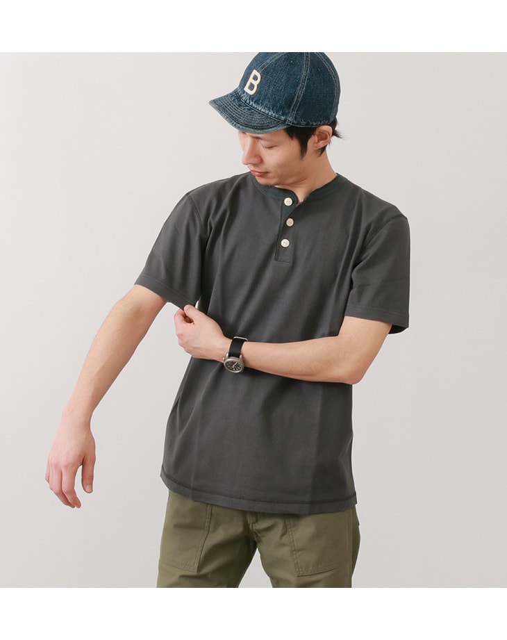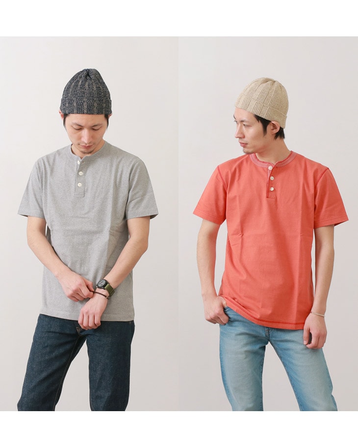 BARNS(バーンズ) BR-8146 小寸編み ヘンリーネック 半袖 Tシャツ / フラットシーマ / メンズ / 無地 / 日本製 / VINTAGE HENLEY-NECK TEE