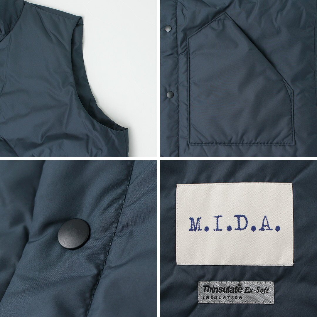 【30%OFF】M.I.D.A.(ミダ) ナイロン パディング ベスト 防風 保温 撥水 中綿 シンサレート メンズ インナーベスト【セール】