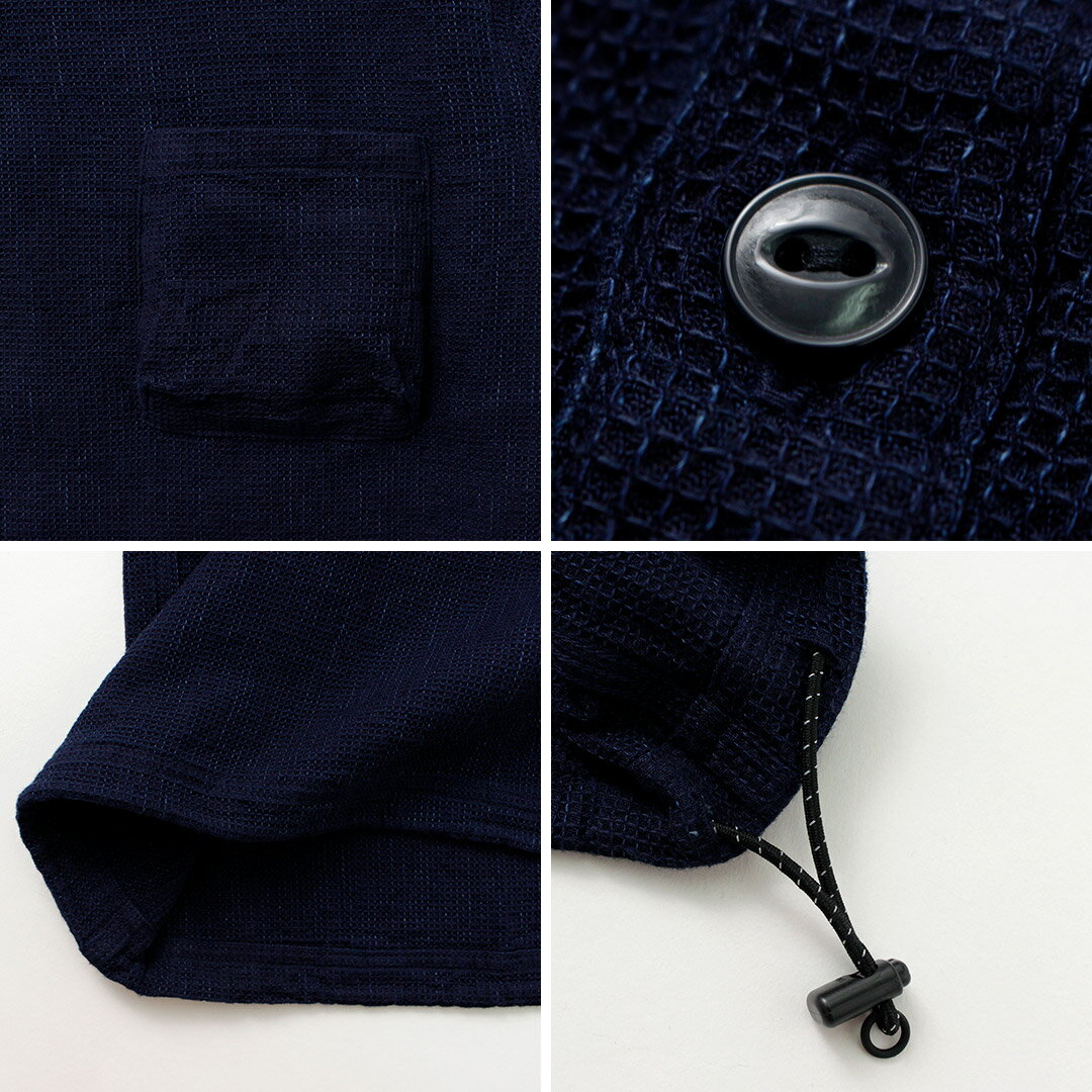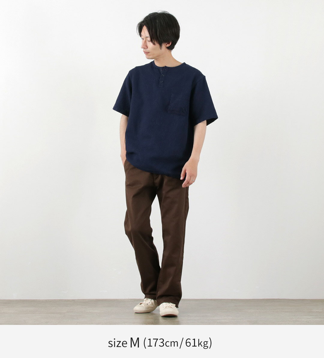 FOB FACTORY(FOBファクトリー) F3493 インディゴ ワッフル Tシャツ / トップス 半袖 メンズ ヘンリーネック 日本製 INDIGO WAFFLE-T
