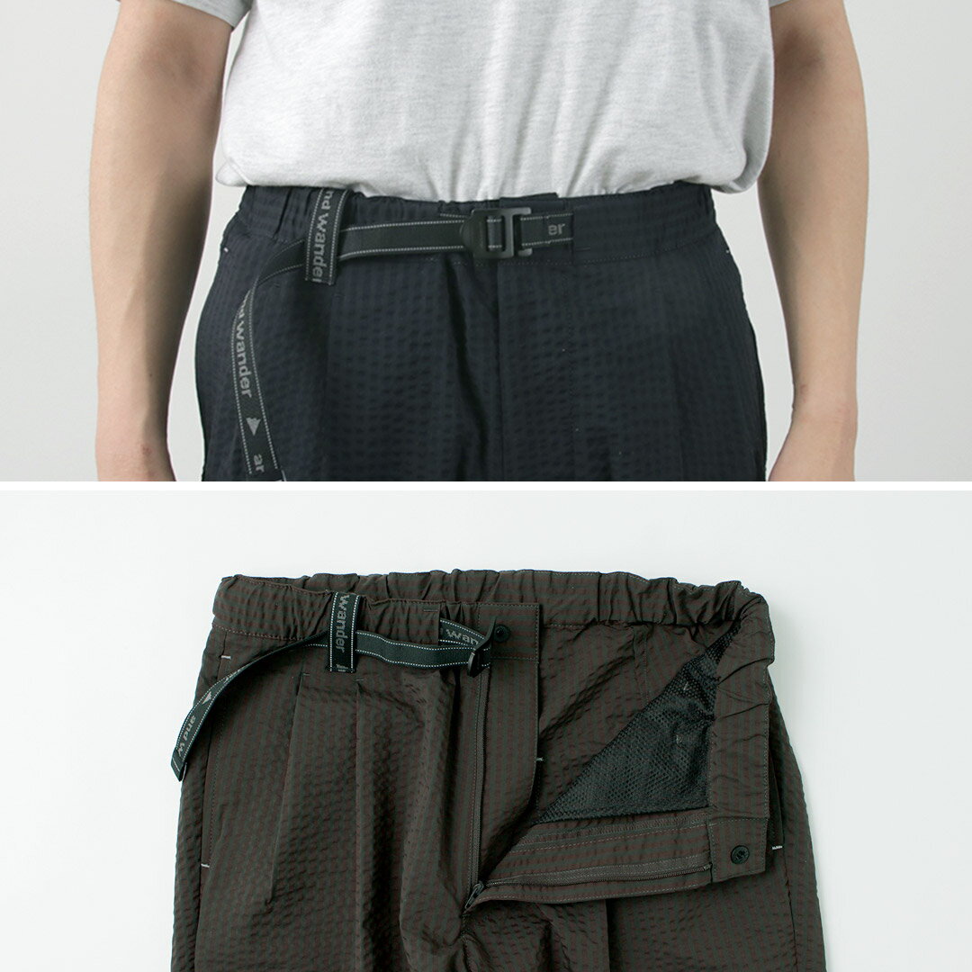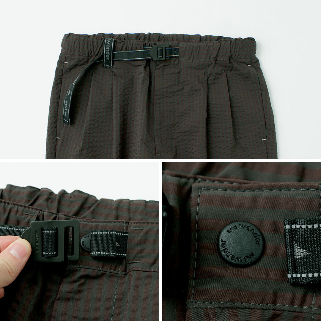 AND WANDER(アンドワンダー) ドライソフト シアサッカー パンツ / ボトムス 伸縮 吸湿速乾 COOLMAX Dry soft seersucker pants