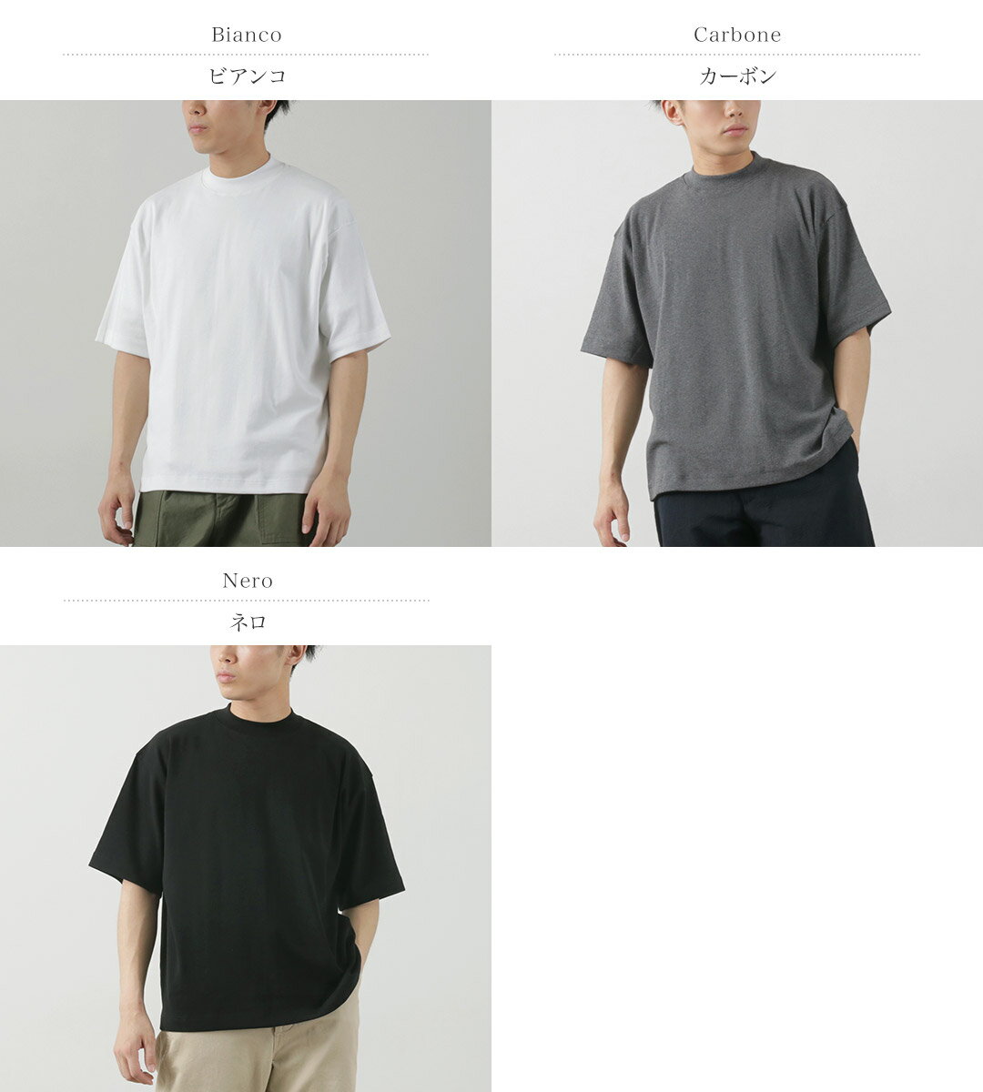 【10%OFFクーポン対象】GICIPI(ジチピ) ボーンゴラ モックネック リラックスフィット フライス Tシャツ / メンズ トップス 半袖 無地 綿 コットン イタリア製 VONGOLA