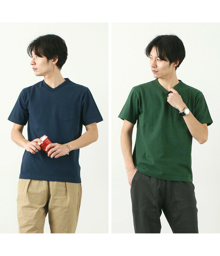 【50%OFF】BARNS(バーンズ) カラー別注 吊り編み 天竺 ループウィール Vネック ポケット Tシャツ / 米綿 / メンズ / 半袖 無地 / 日本製 / BR-11001A【セール】