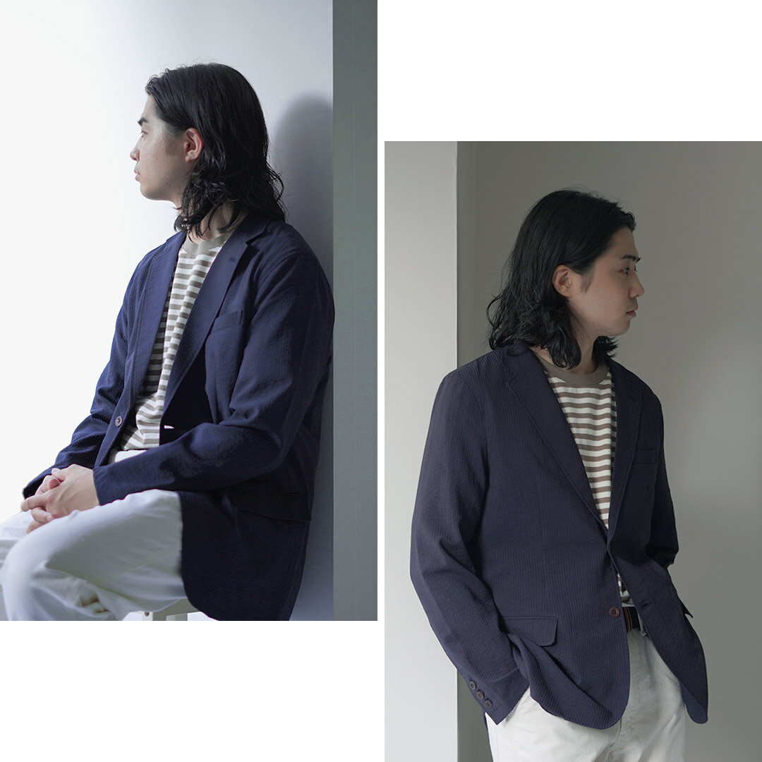 JAPAN BLUE JEANS(ジャパンブルージーンズ) 別注 シアサッカー サマー アンコンジャケット / メンズ ライトアウター オフィスカジュアル ストレッチ 伸縮 日本製