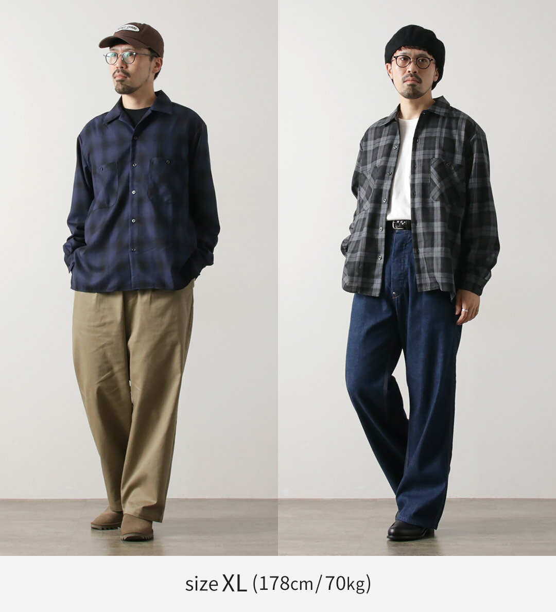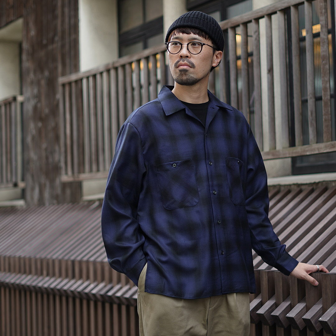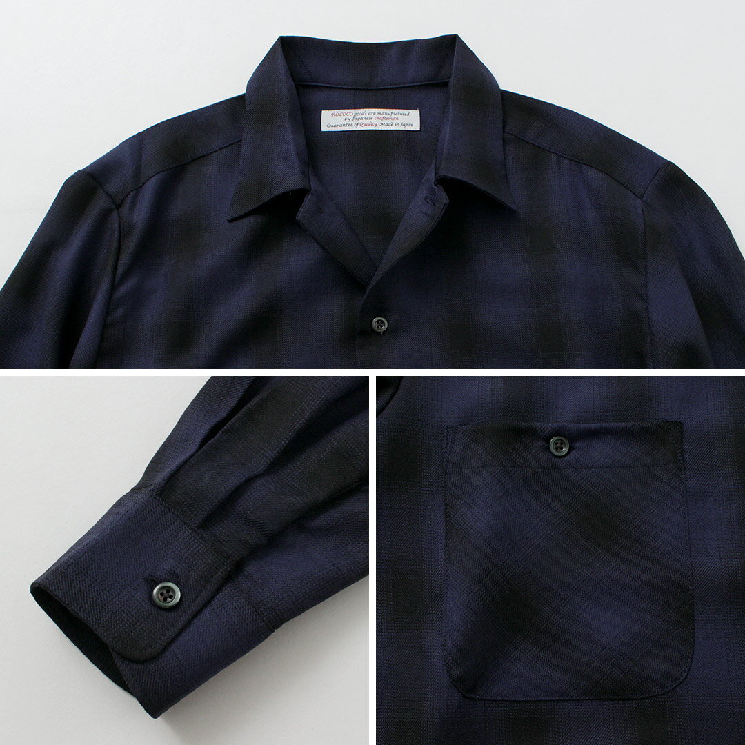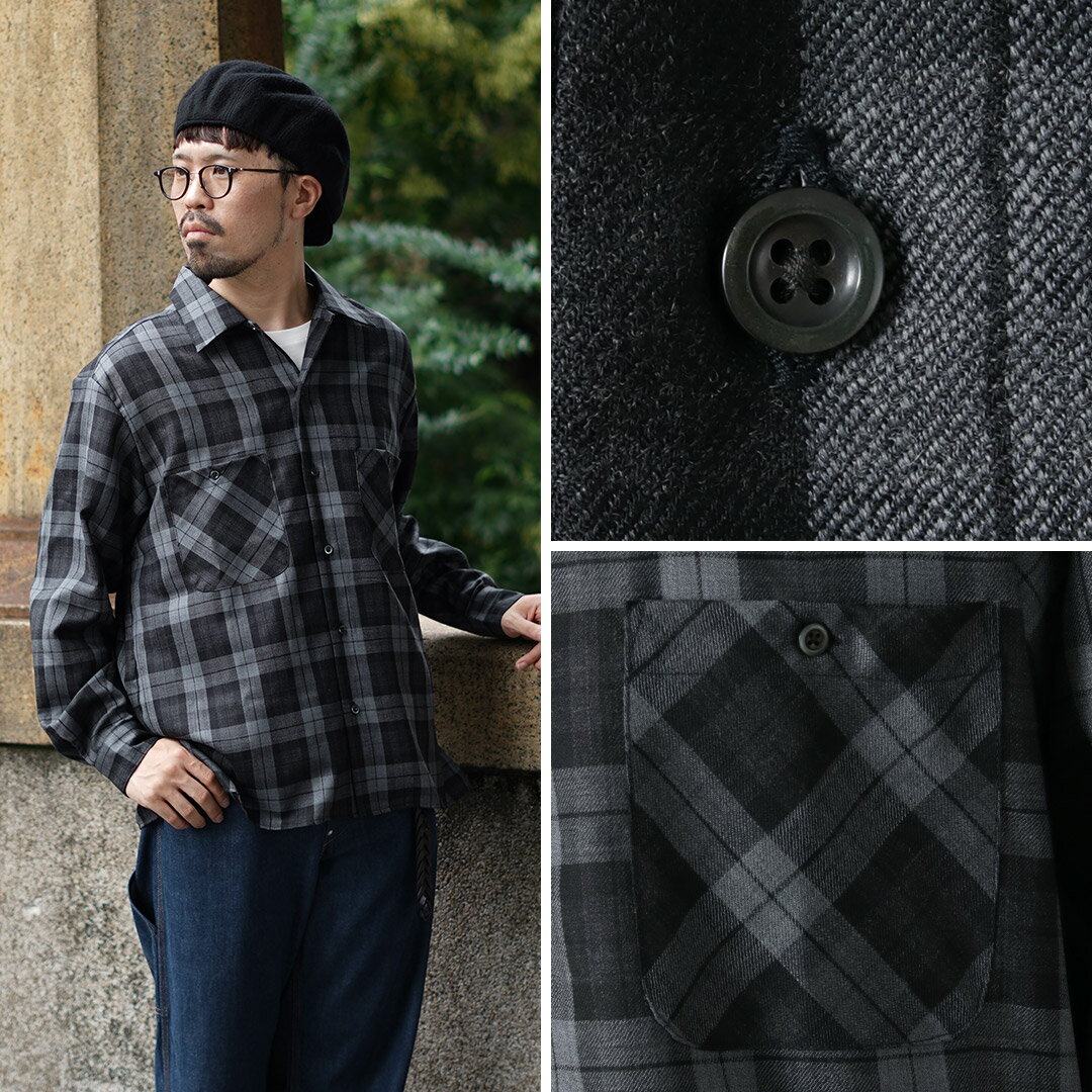 ROCOCO(ロココ) ウール オープンカラーシャツ / メンズ オンブレ タータン チェック 柄 長袖 開襟 日本製