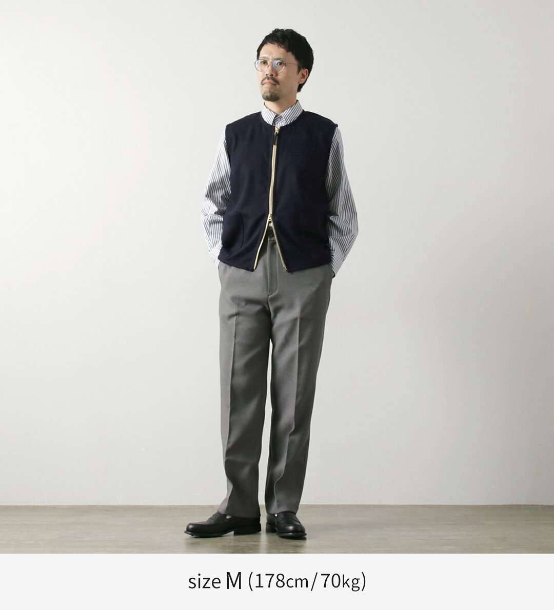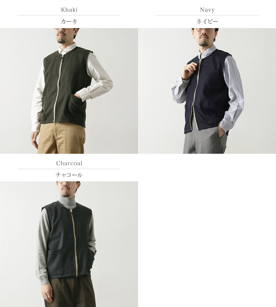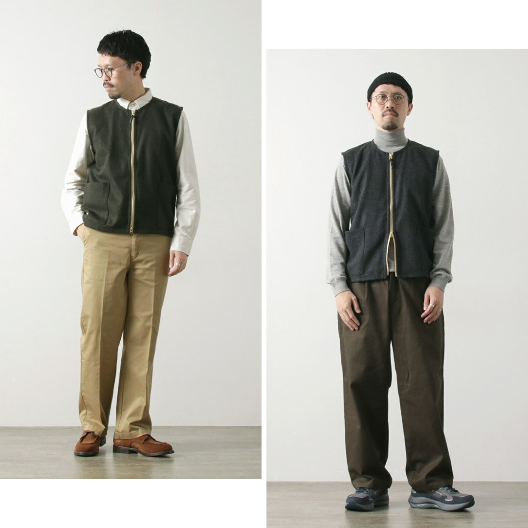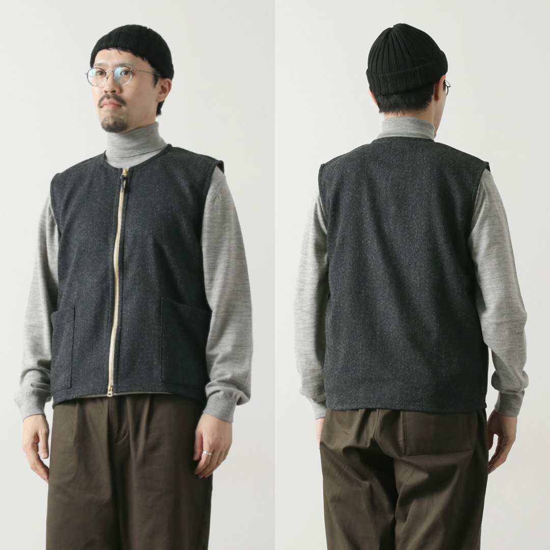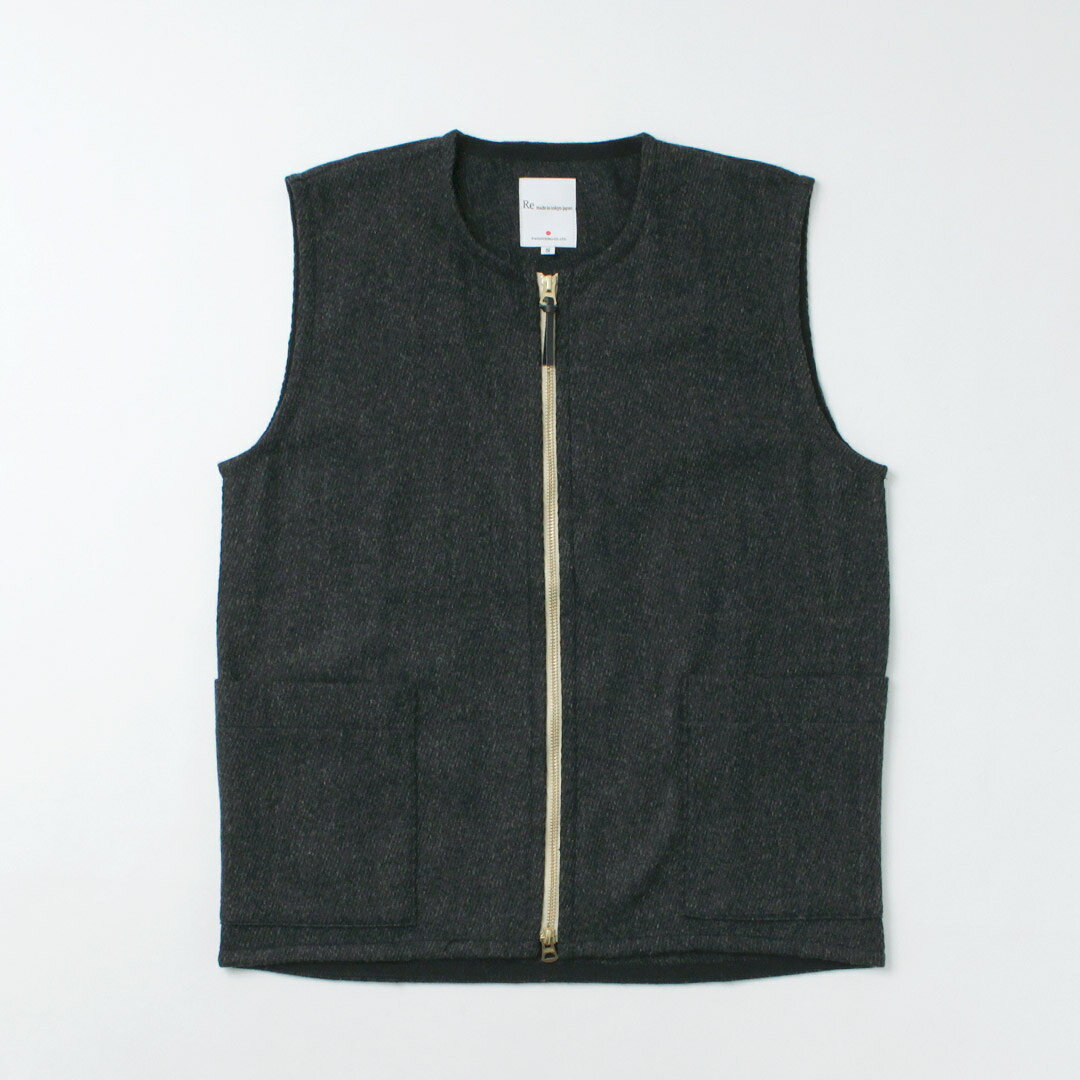 RE MADE IN TOKYO JAPAN(アールイーメイドイントウキョウジャパン) ウールカシミア カルゼ クルーベスト / メンズ トップス 日本製 Wool Cashmere Kersey Crew Vest