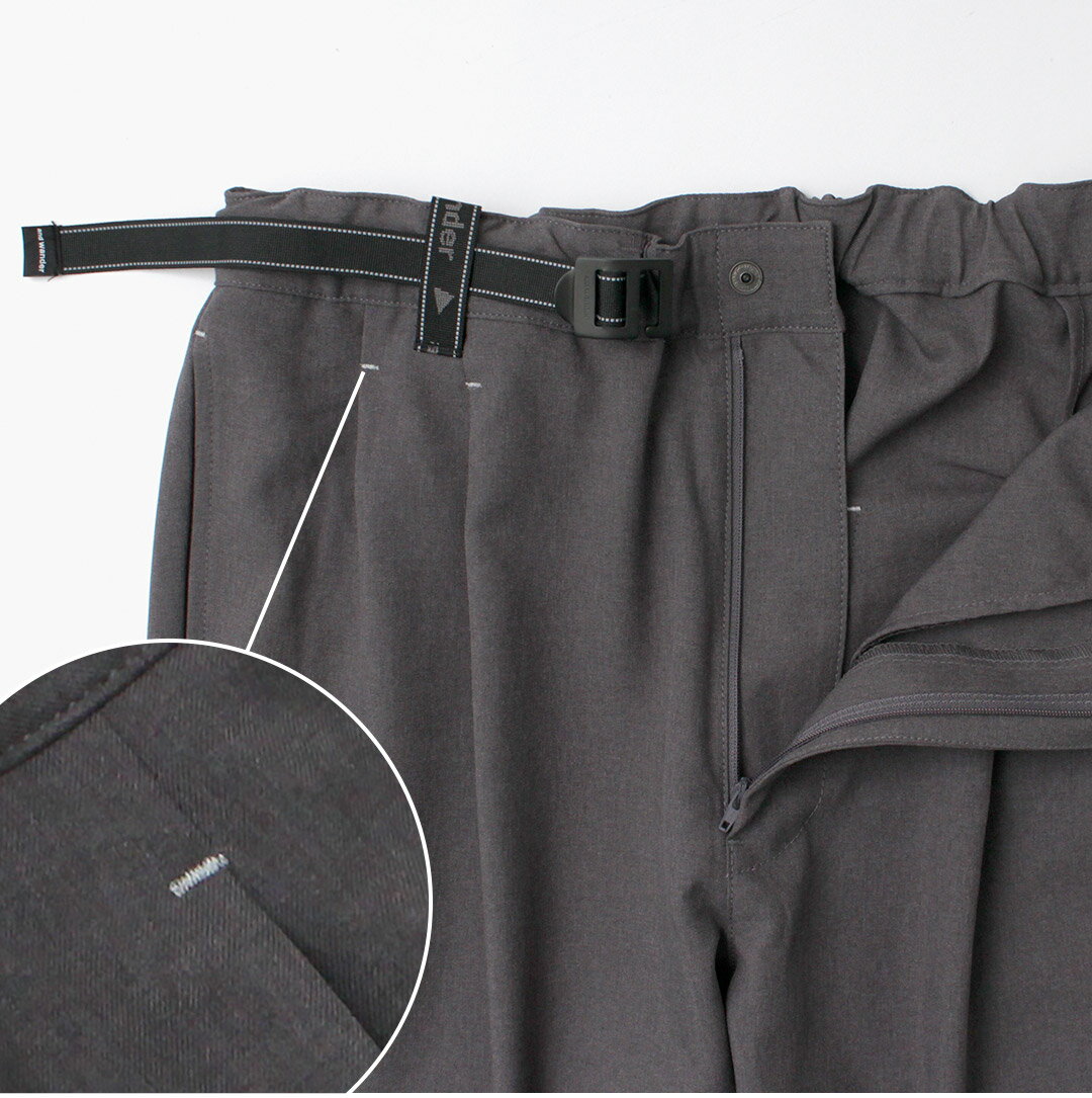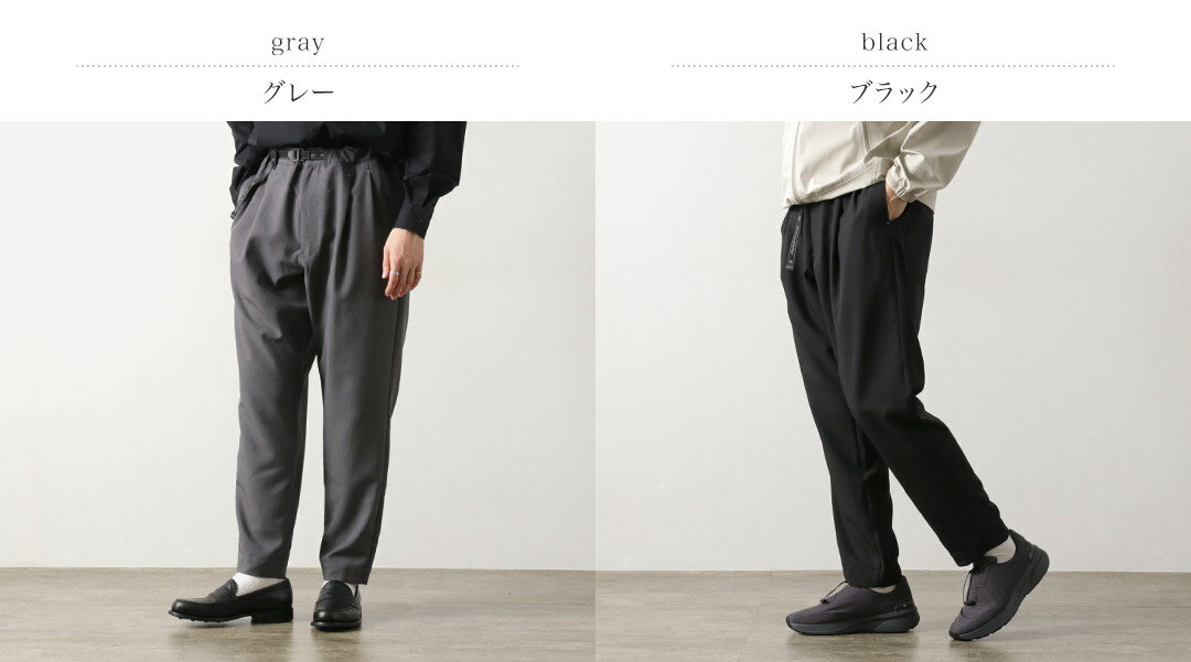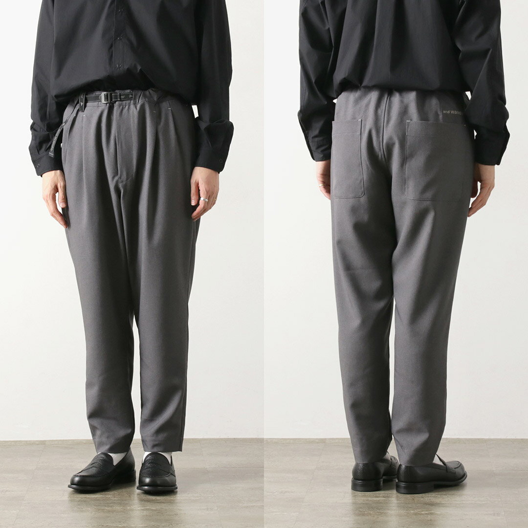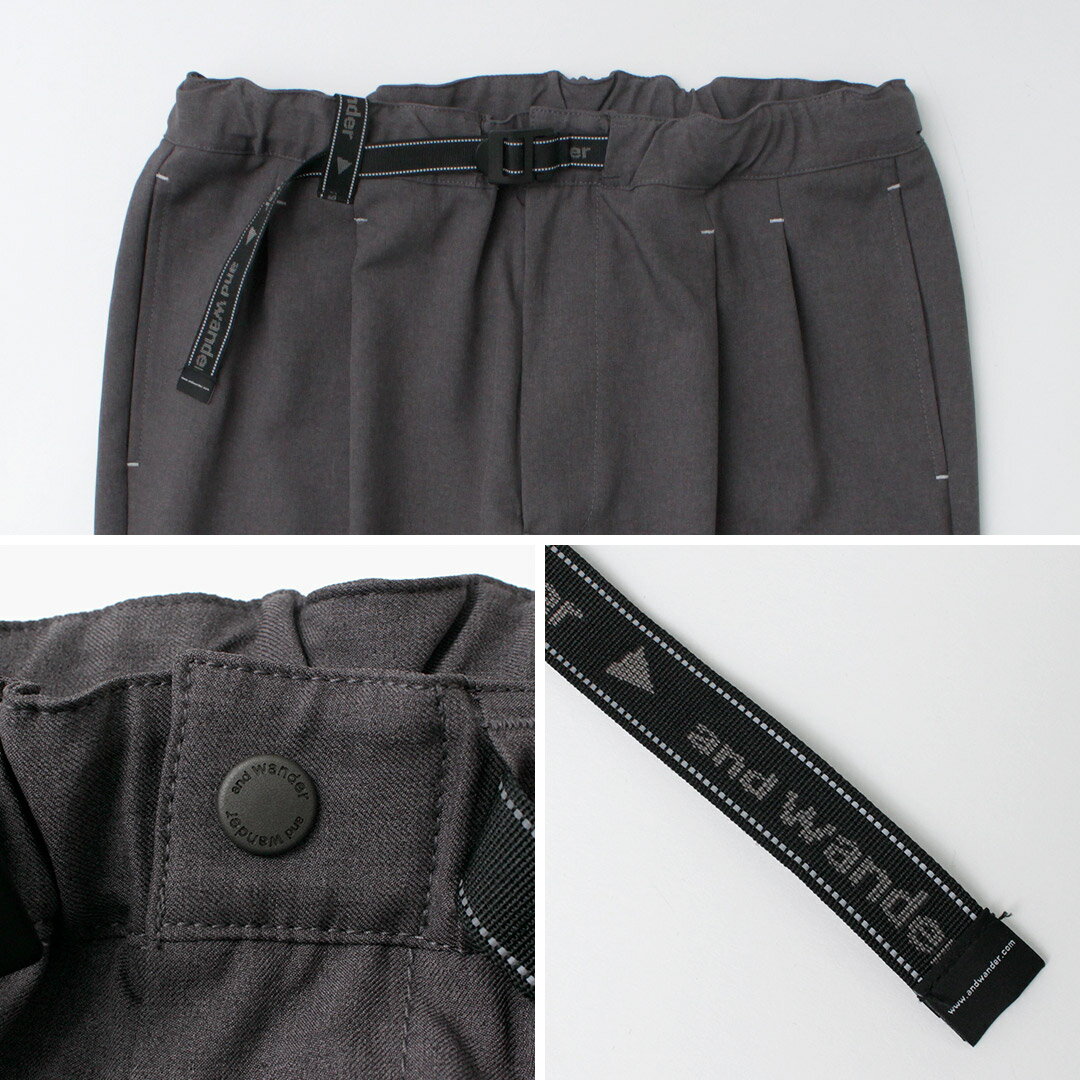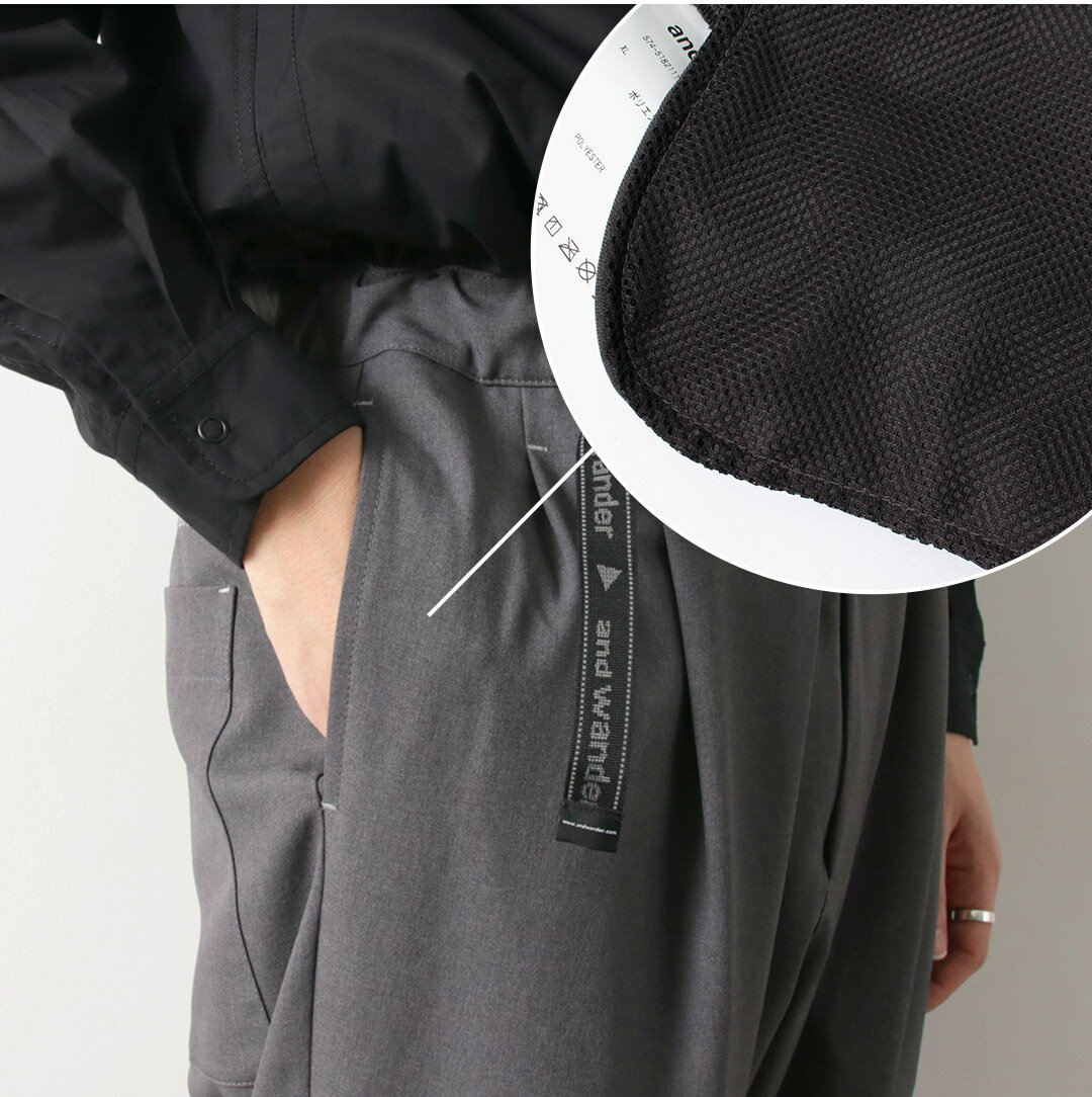 AND WANDER(アンドワンダー) PE メランジ ツイルパンツ / イージーパンツ 撥水 ウエストゴム 総ゴム ワイドテーパード ストレッチ メンズ