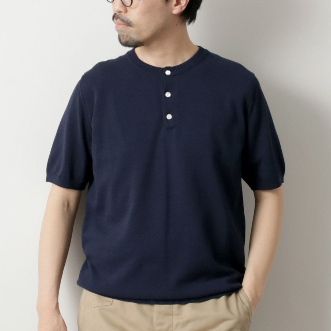 【10%OFFクーポン対象】MOONCASTLE(ムーンキャッスル) アイスコットン ヘンリーネックTシャツ / メンズ トップス 半袖 無地 日本製 綿 Ice Cotton Henley neck Tee