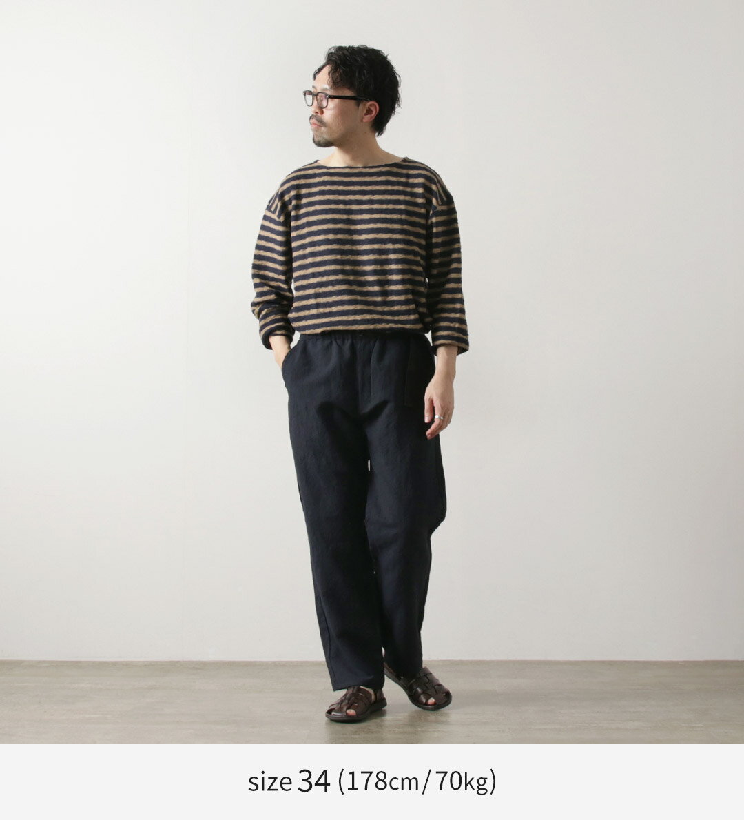 【10%OFFクーポン対象】FUJITO(フジト) リネン/ウール トロピカル ナウン ベルトレスパンツ / メンズ ボトムス イージーパンツ ウエストゴム 総ゴム N.O.UN Belt Less