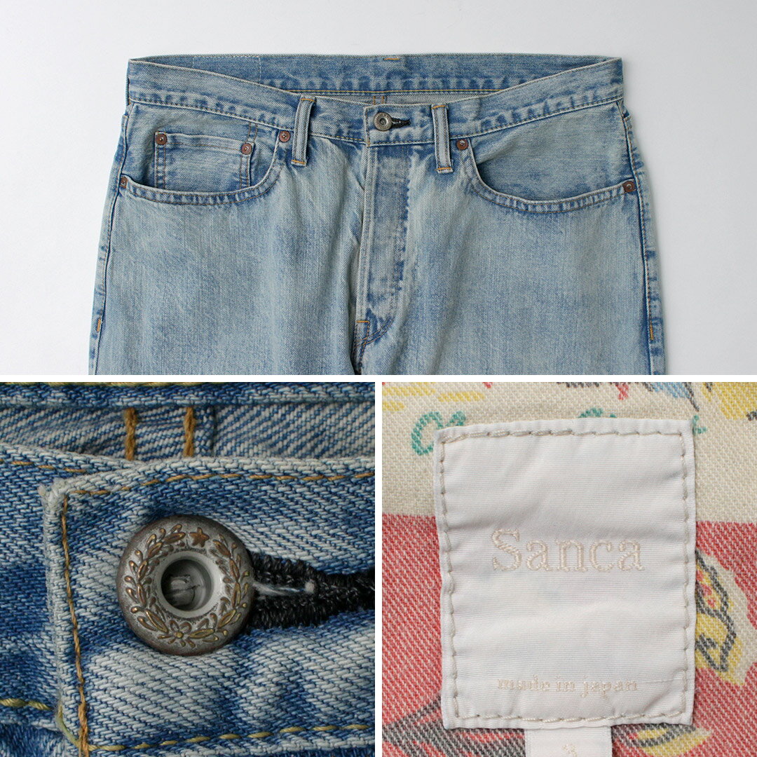 【10%OFFクーポン対象】SANCA(サンカ) 14オンス デニム テーパード 5Pパンツ アイスウォッシュ / メンズ セルヴィッチ セルビッチ 5ポケット ジーンズ 日本製 14OZ DENIM 5P TAPERED FIT ICE WASH