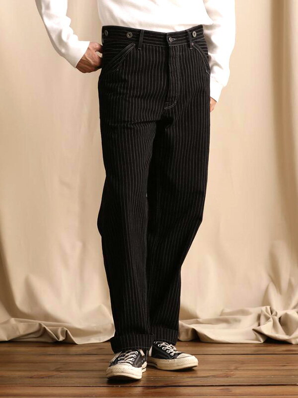 Schott ショット ヒッコリーストライプ パンツ メンズ レディース おしゃれ かっこいい OLD HICKORY DENIM PANTS オールド ヒッコリー デニム パンツ インディゴ ブラック シンチバック サスペンダー釦 三角ステッチ ワイドストレート ワークパンツ バイク ワーク 7825911002