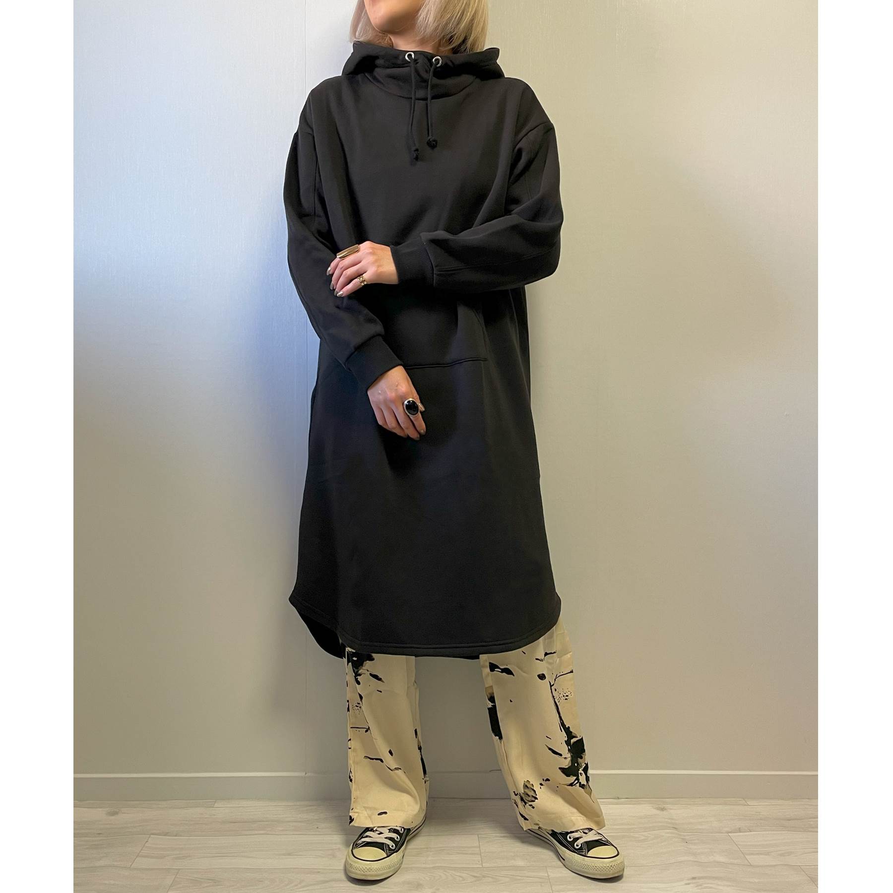 \SALE価格★送料無料/パーカー レディース ワンピース 裏起毛 秋 冬 ハイネック フード チュニック ルームウェア 大人 体型カバー ゆったり 20代 30代 40代 50代 韓国 ファッション