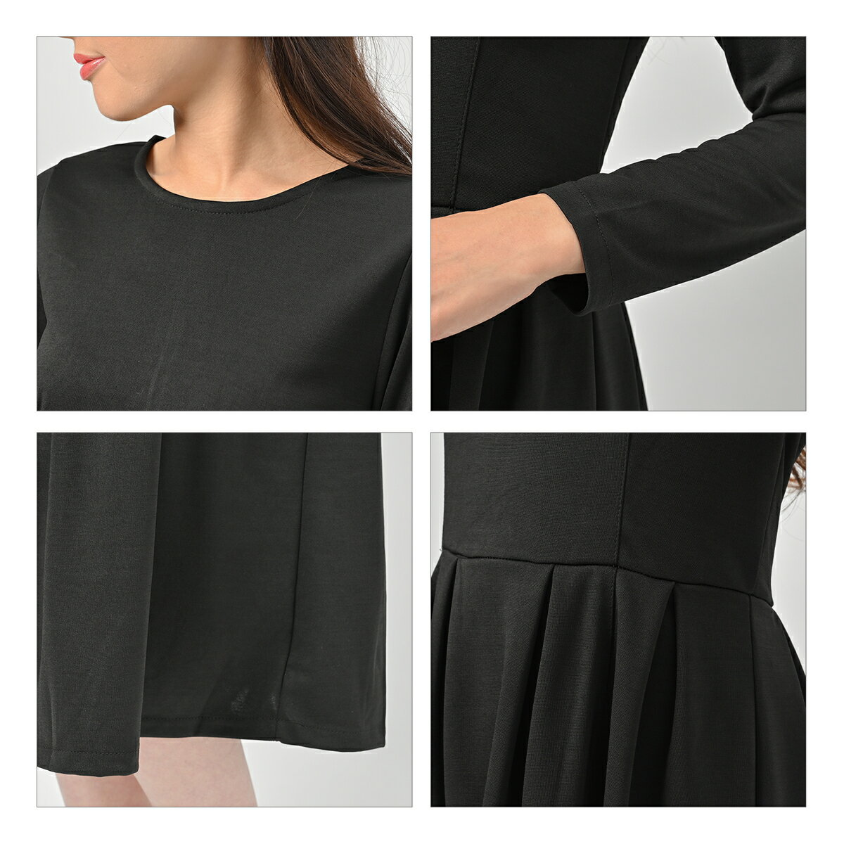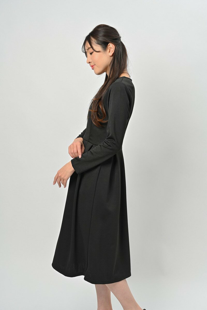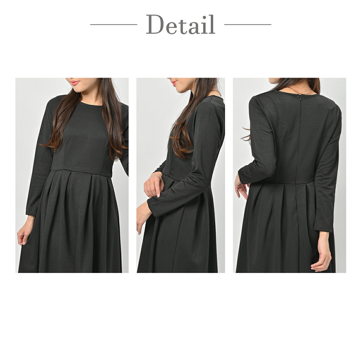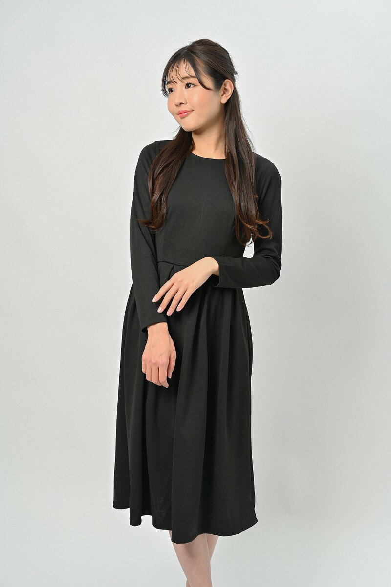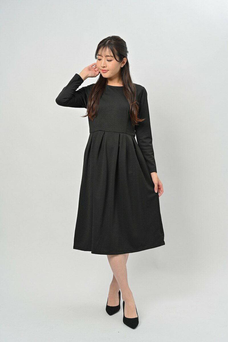 店内SALE!! ブラック フォーマル ワンピース 喪服 礼服 きれいめ 黒 クルーネック フレア Aライン ドレス ひざ丈 長袖 20代 30代 40代 50代 レディース 無地 膝丈 ゆったり ロング 大きいサイズ ブラックフォーマル 上品 秋 冬 春 冠婚葬祭 結婚式 二次会 演奏会 葬式