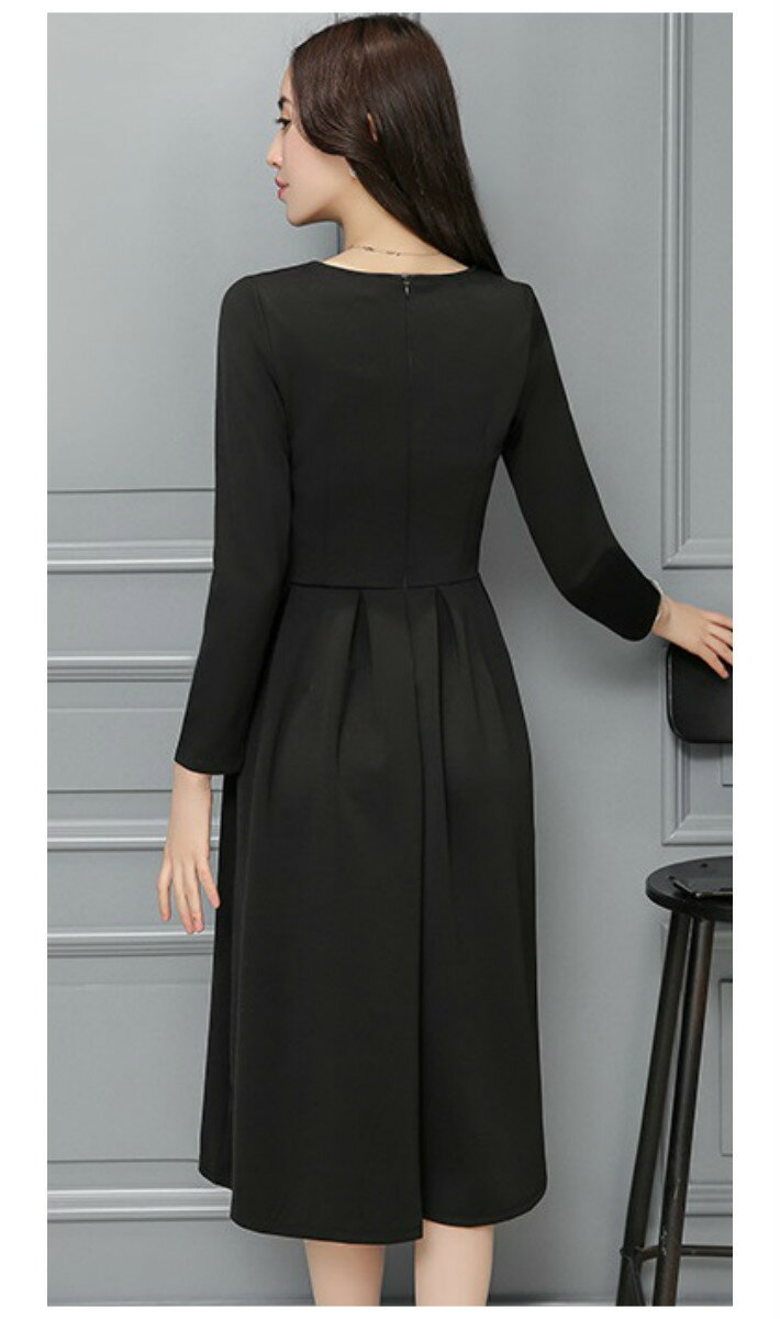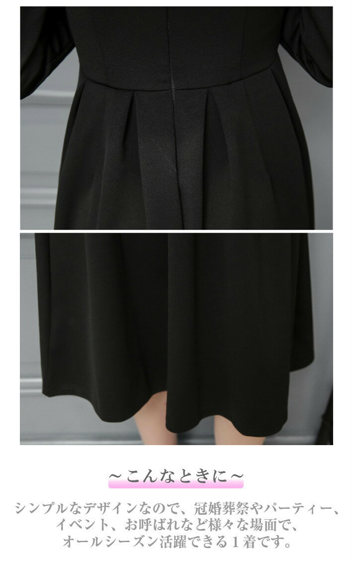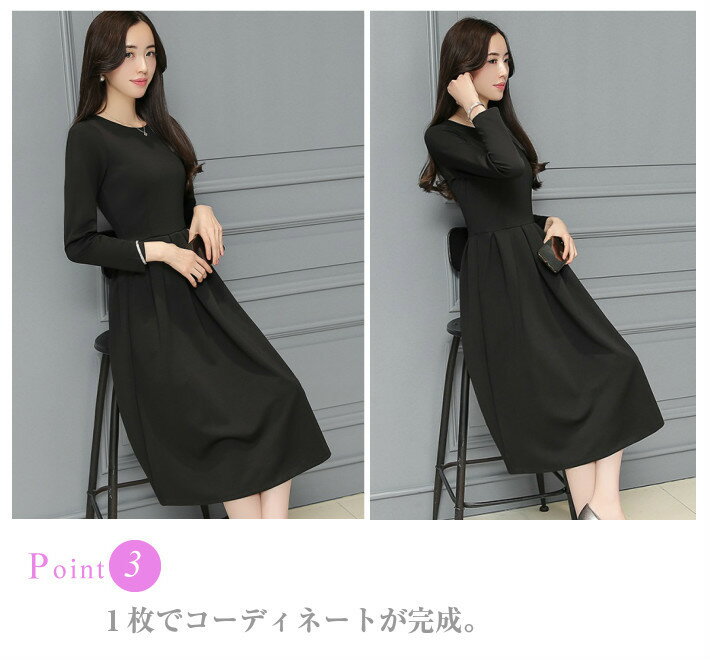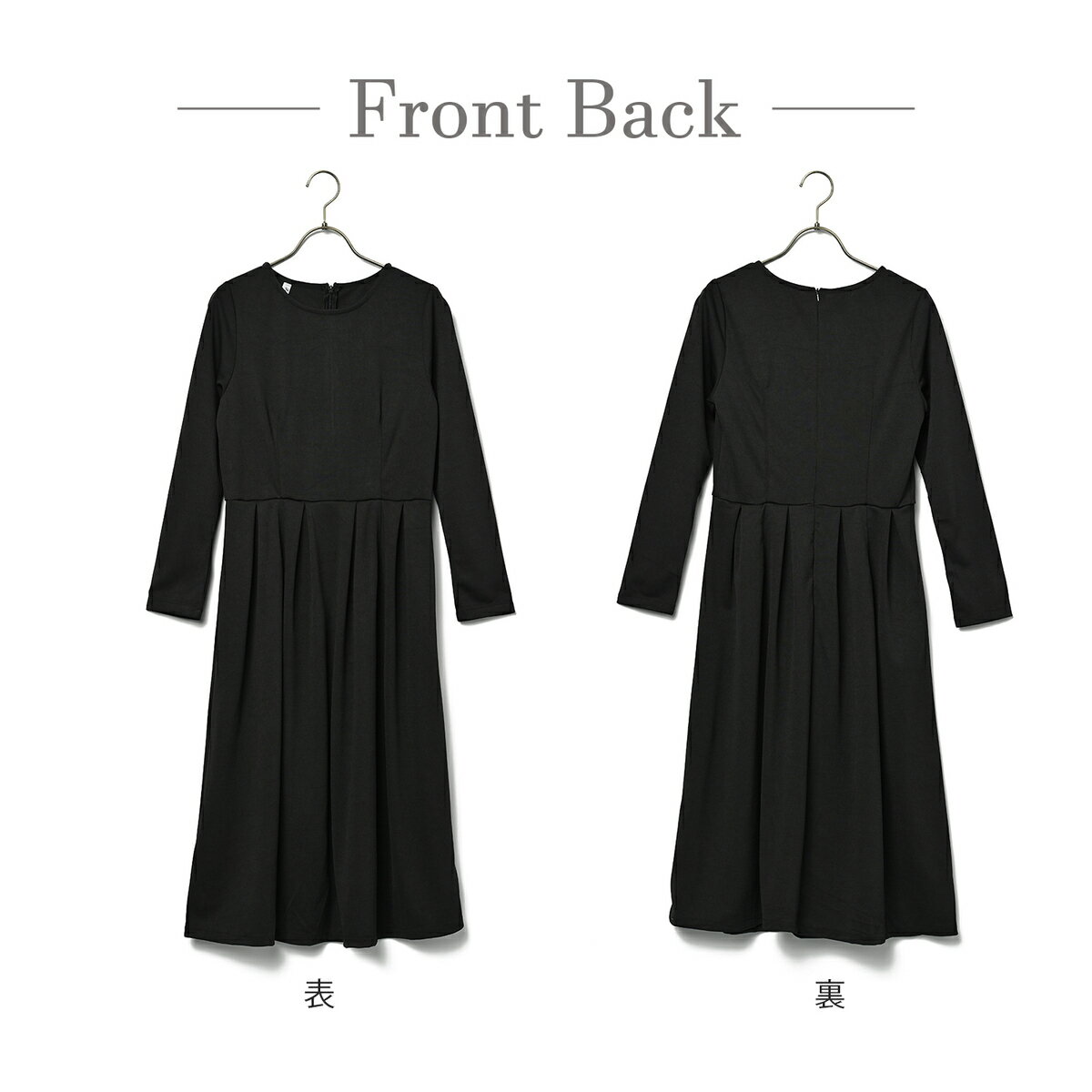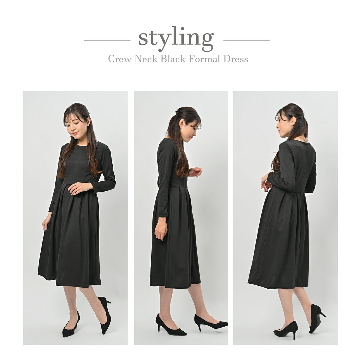 店内SALE!! ブラック フォーマル ワンピース 喪服 礼服 きれいめ 黒 クルーネック フレア Aライン ドレス ひざ丈 長袖 20代 30代 40代 50代 レディース 無地 膝丈 ゆったり ロング 大きいサイズ ブラックフォーマル 上品 秋 冬 春 冠婚葬祭 結婚式 二次会 演奏会 葬式
