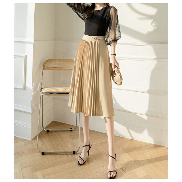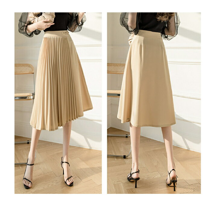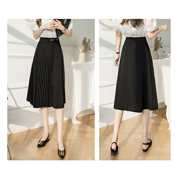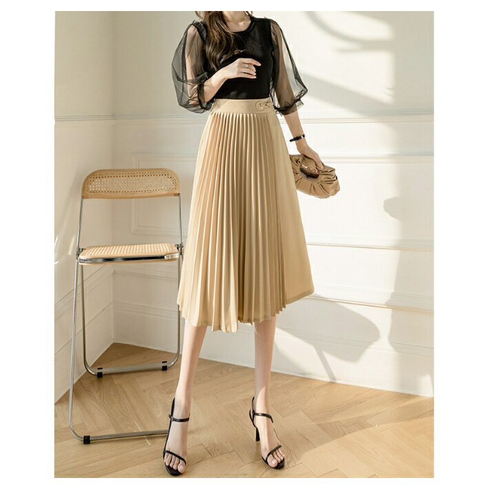 マラソンSALE!! プリーツ ドッキング スカート レディース ボトムス きれいめ 清楚 上品 フレア ロング / 膝下 ひざ下 ミモレ丈 フレアスカート フォーマル カジュアル オフィス オフィスカジュアル 無地 大きいサイズ Aライン 黒 ブラック ベージュ 春 夏 春夏 秋