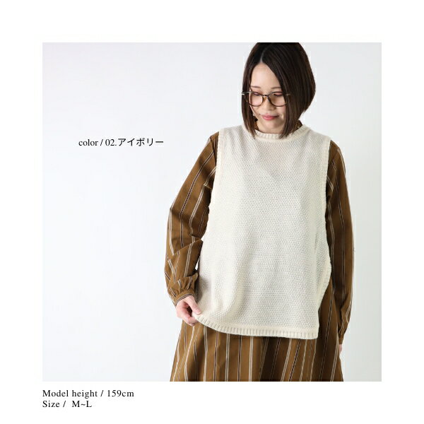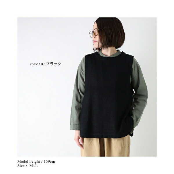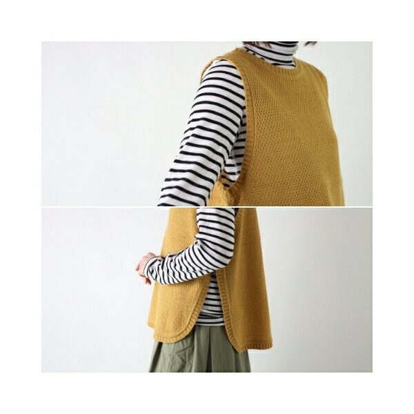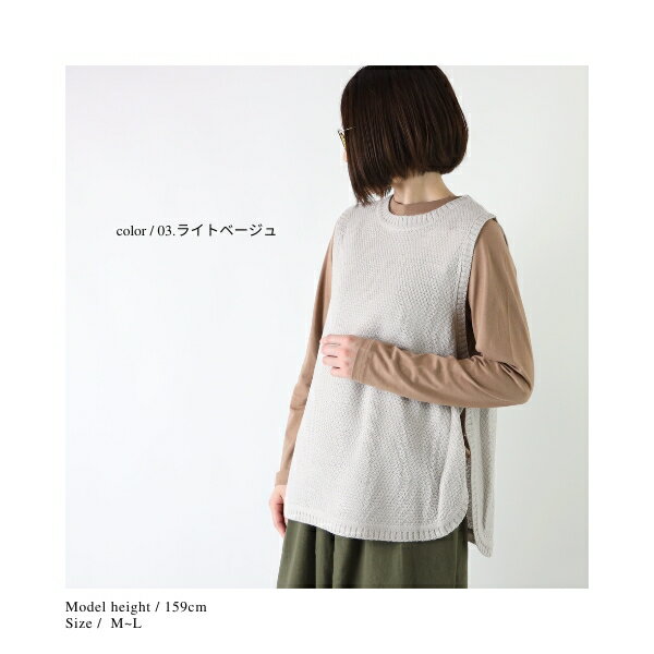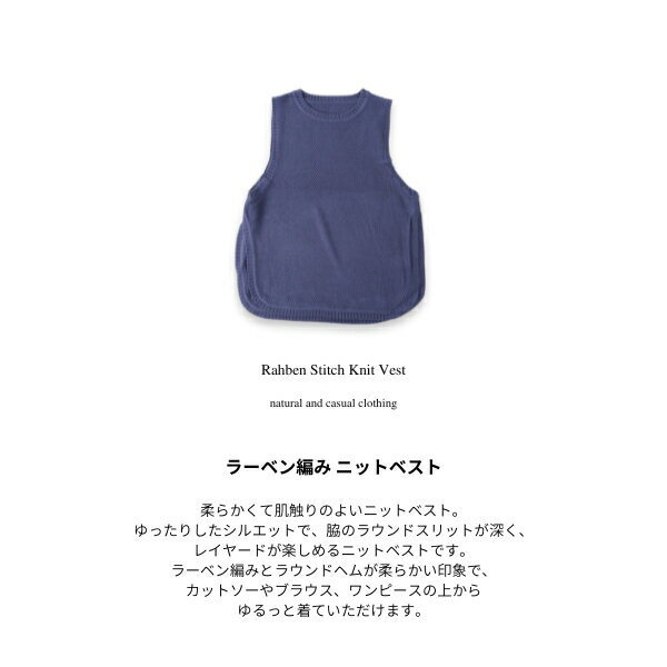 ベスト ニットベスト ラーベン編み ラウンドヘム サイドスリット レイヤードコーデ ゆったり レディース ナチュラル カジュアル 大人ナチュラル M-L 無地 5色 春 秋 冬 ロングシーズン