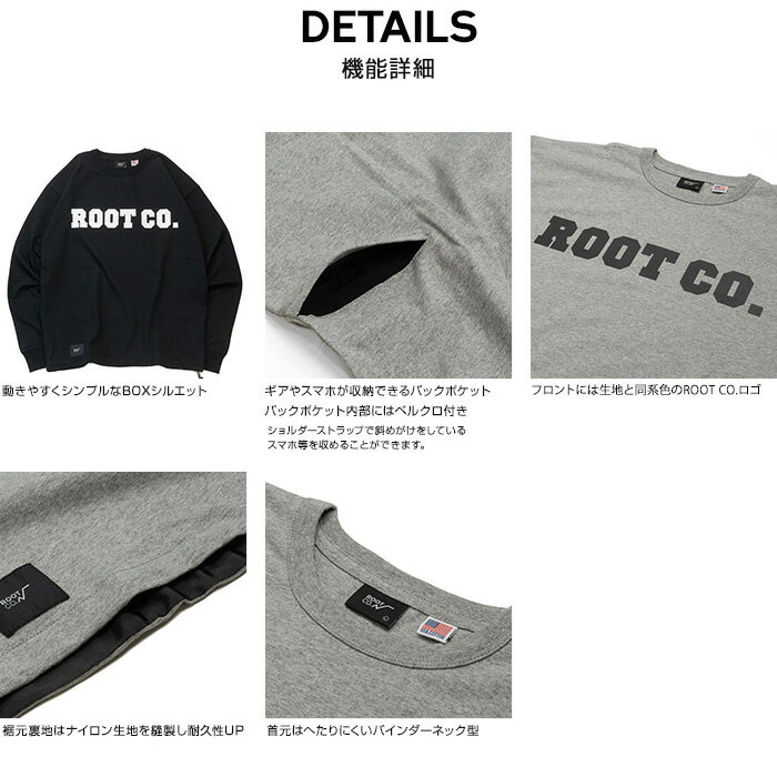 【ROOT CO.】 PLAY UTILITY BACK POCKET Long Sleeve Logo T-Shirts