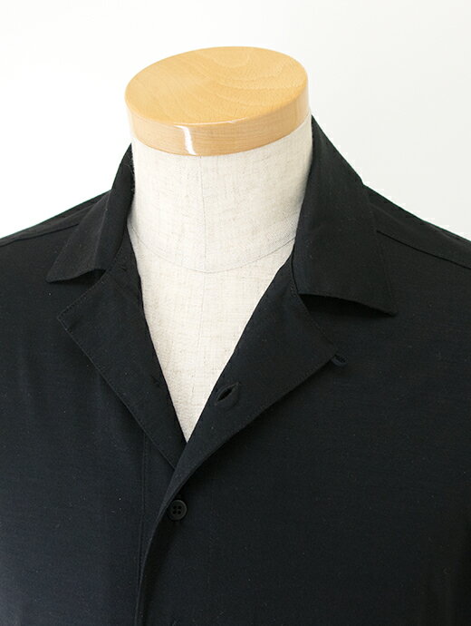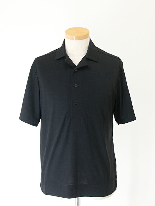 VOW ボウ ウールポロシャツ ブラック Super150s ジャージー ヴィンテージオープンカラー2.0 洗濯可 vow500803
