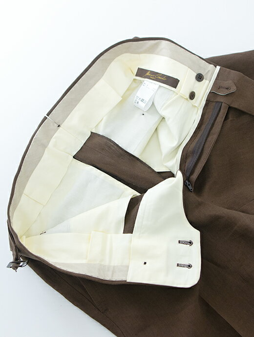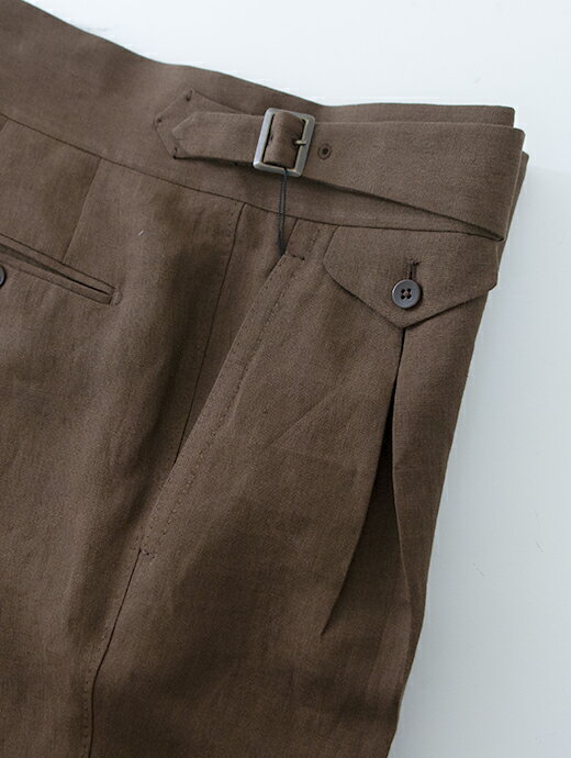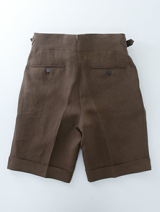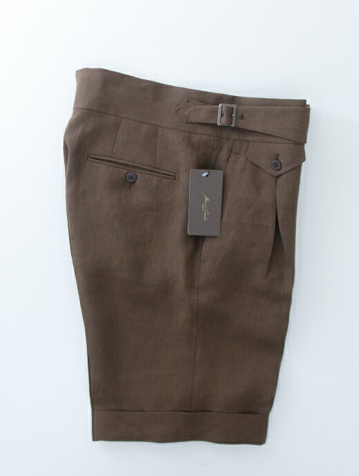 Massimo Corrado マッシモ・コラード 別注 ベルトレストラウザーショーツ ブラウン ウールリネン イタリア製 mac501002