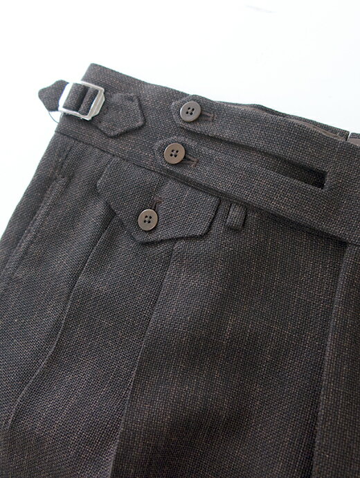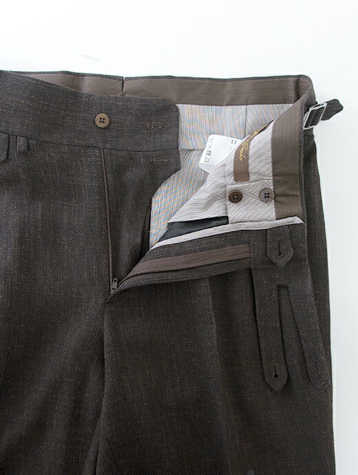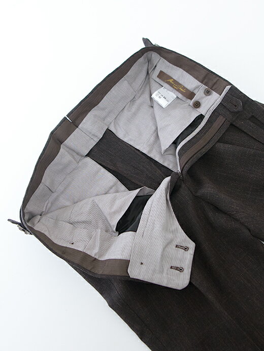 Massimo Corrado マッシモ・コラード パンツ ダークブラウン ダークブラウン ベルトレストラウザーズ ソフトメランジウール イタリア製 mac501003