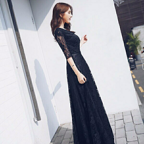 韓国 ロング ドレス パーティードレス 披露宴 フォーマル 20代 30代 40代 ブラック おしゃれ 大きいサイズ ワンピース 7分袖 袖あり 冬 お呼ばれXS/S/M/L/XL/2XL