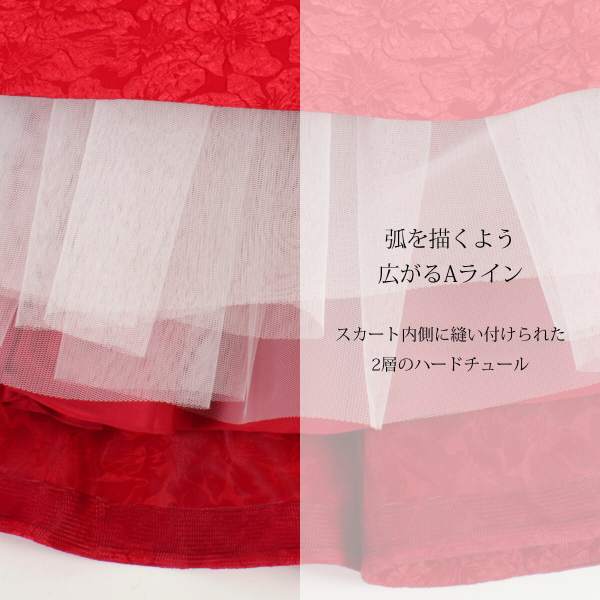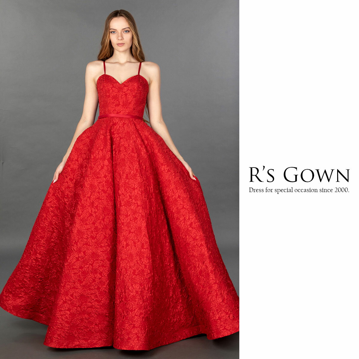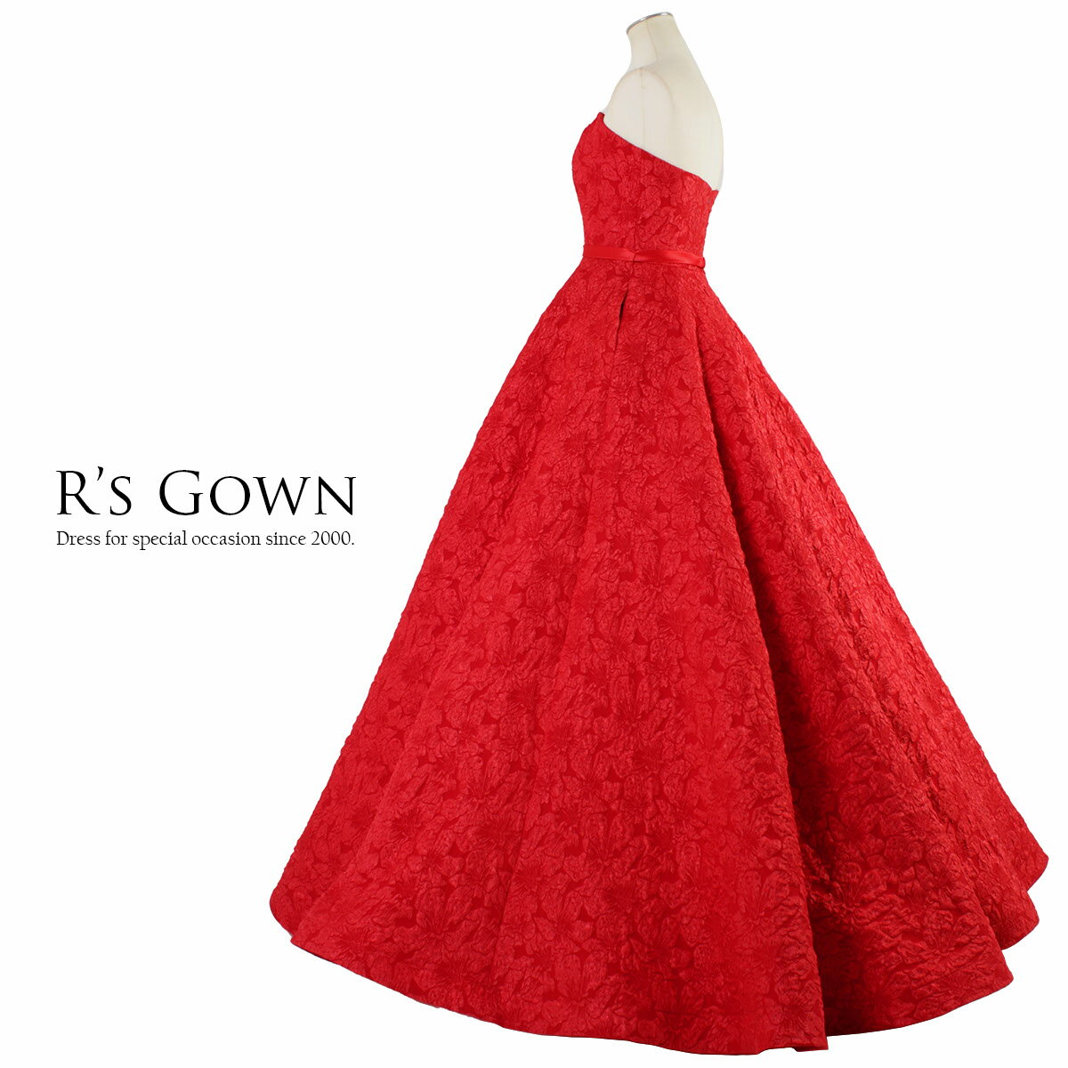 鮮やかな深紅のジャカードドレス 演奏会用ドレス 赤 映え 高見え ステージドレス ロングドレス 大きいサイズ ソロ デュオ トリオ カルテット コンクール クリスマス Aライン 9号 11号 13号 15号 17号 19号 FD-080293