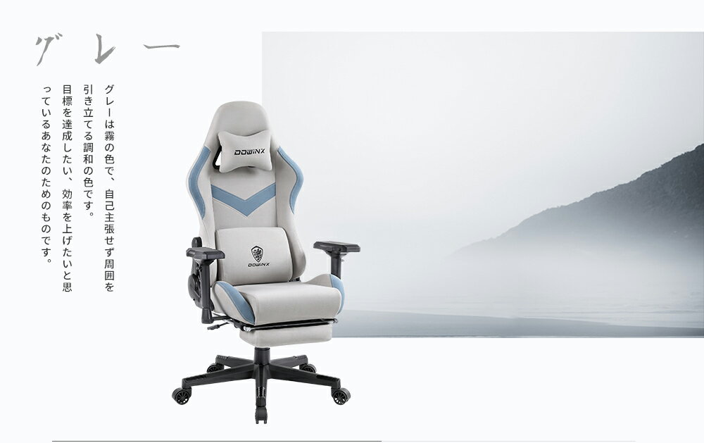 \超お得セール中!激安お見逃しなく!/☆楽天5冠達成☆Dowinx ゲーミングチェア 椅子 チェア ファブリック オットマン付き オフィスチェア パソコンチェア 新開発4Dアームレスト フットレスト デスクチェア ゲーム用チェア ポケットコイル スカイブルー グレー