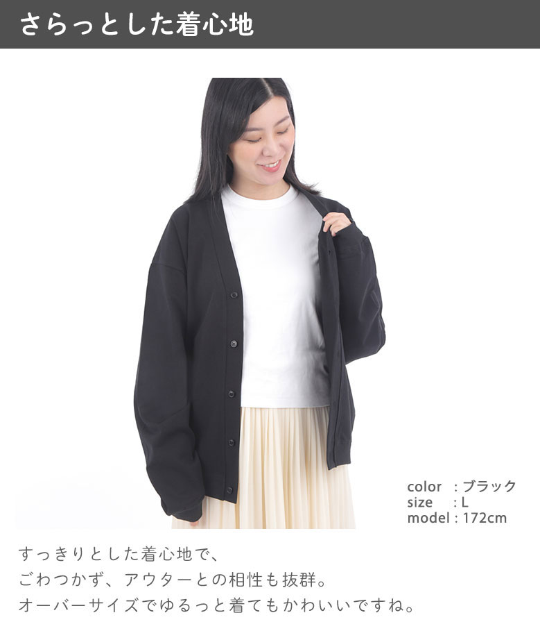 カーディガン 綿 レディース 綿カーディガン コットンカーディガン レディースカーディガン カーデガン 薄手カーディガン ビッグカーディガン かーでぃがん くすみカラー 黒 ミント ネイビー スウェットカーディガン 秋カーディガン 春カーディガン 暖かい 4488