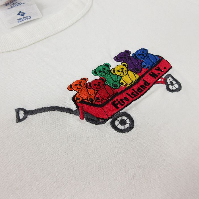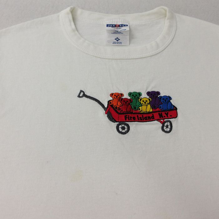 【中古】古着 ジャージーズ ビンテージ ヴィンテージ ノースリーブTシャツ メンズ 90年代 90s クマ 刺繍 コットン クルーネック 丸首 USA製 アメリカ製 白 ホワイト Mサイズ 中古 春夏 夏物 夏服 メンズファッション カジュアル おしゃれ 5OF