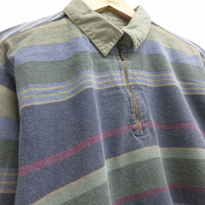 【中古】古着 エルエルビーン LLBEAN 長袖 ハーフジップシャツ レディース 90年代 90s コットン 濃紺他 ネイビー ボーダー 【spe】 中古 ブラウス トップス | 春夏 春物 春服 秋冬 秋物 秋服 カジュアル レディースファッション おしゃれ かわいい