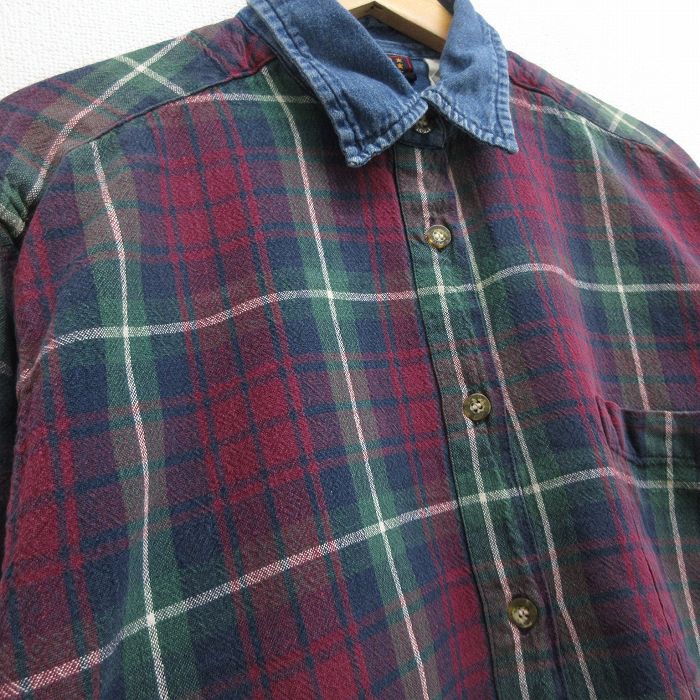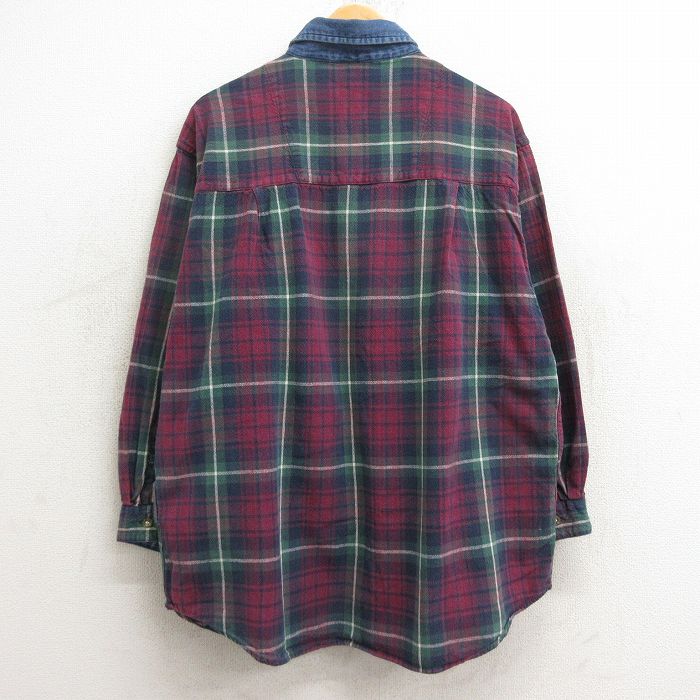 【中古】古着 FADED GLORY 長袖シャツ レディース 00年代 00s 襟デニム 大きいサイズ 2L LL ビッグシルエット ゆったり ビッグサイズ オーバーサイズ エンジ他 チェック 中古 ブラウス トップス | 春夏 春物 春服 秋冬 秋物 秋服 カジュアル レディースファッション お