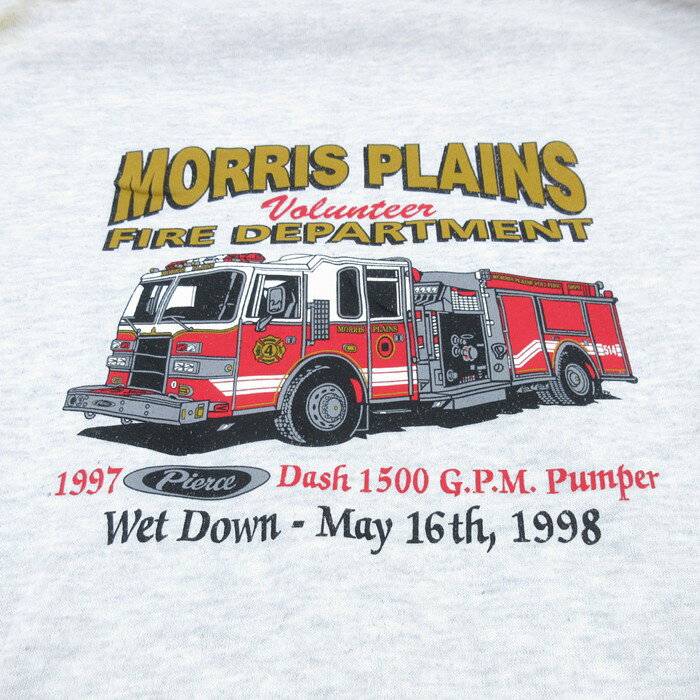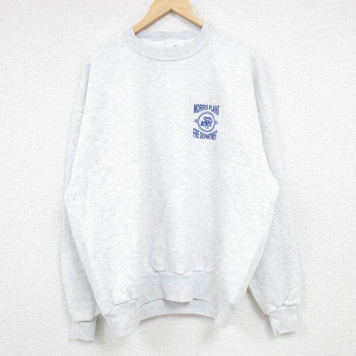 【中古】古着 ジャージーズ 長袖スウェット メンズ 90年代 90s 消防車 クルーネック 丸首 USA製 アメリカ製 薄グレー 霜降り XLサイズ 中古 スエット トレーナー トップス | 春夏 春物 春服 秋冬 秋物 秋服 メンズファッション カジュアル おしゃれ ファッション 2OF