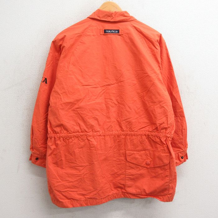 【中古】古着 ノーティカ NAUTICA 長袖 ブランド マウンテンジャケット レディース 90年代 90s ビッグロゴ 大きいサイズ 2L LL ビッグシルエット ゆったり ビッグサイズ オーバーサイズ コットン オレンジ 中古 アウター ジャンパー ブルゾン | 秋冬 秋物 秋服 冬