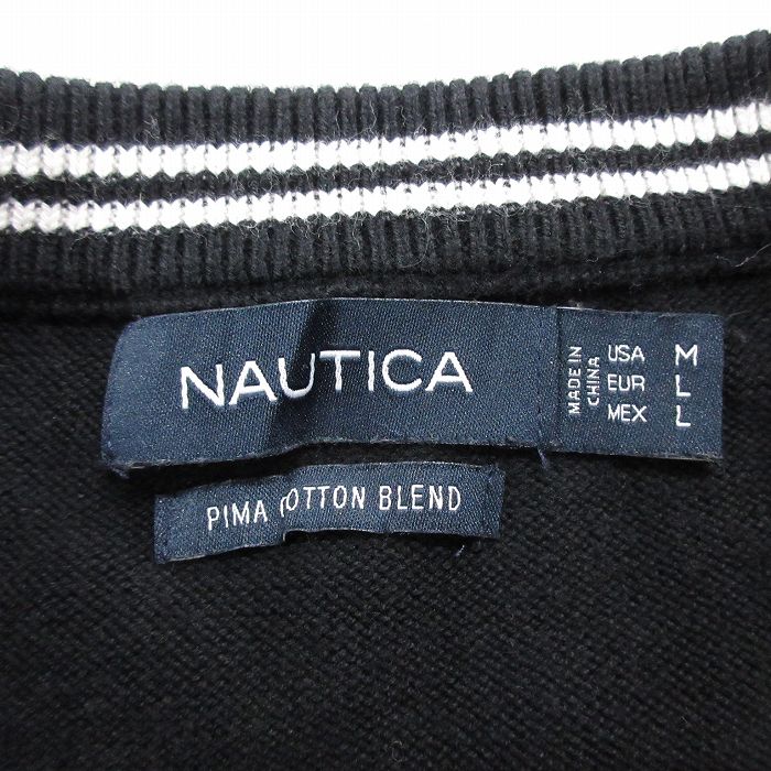 【中古】古着 ノーティカ NAUTICA 長袖 ブランド セーター メンズ ワンポイントロゴ Vネック 黒 ブラック Mサイズ 中古 ニット トップス | 春夏 春物 春服 秋冬 秋物 秋服 メンズファッション カジュアル おしゃれ ファッション