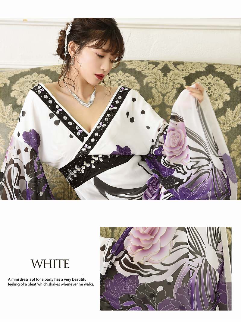 花魁 コスプレ 花魁コスプレ 衣装 着物ドレス 着物 和柄ドレス 和柄 ハロウィン 和装 キャバ ドレス キャバドレス 中ミニ 白 紫 バラ シフォン 和柄ドレス キャバドレス 花魁 ビジュー 着物ドレス 流遊 大きいサイズ 可愛い きれいめ レース あす楽 送料無料