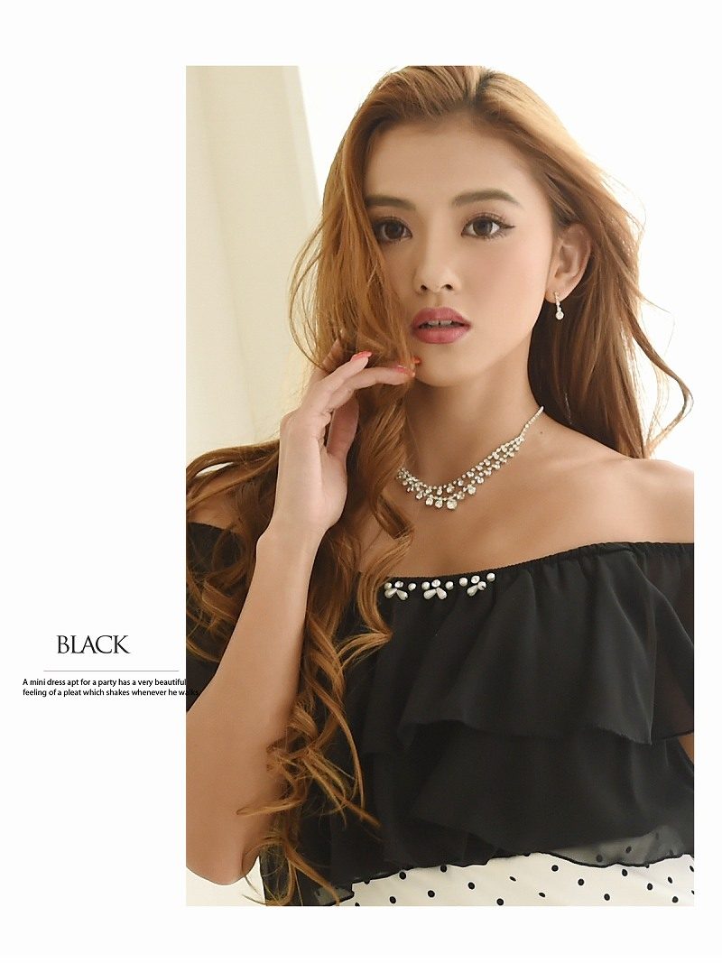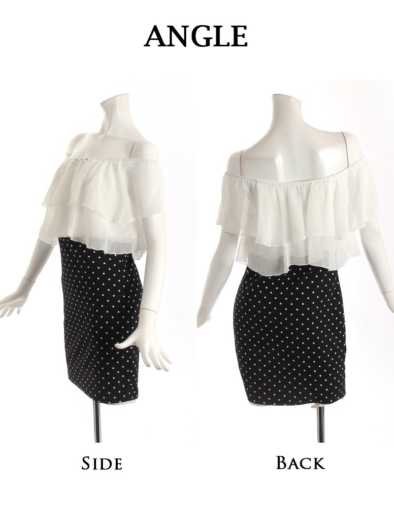 キャバ ドレス キャバドレス ミニドレス ミニ キャバクラドレス キャバクラ パーティードレス セクシー 韓国ドレス 韓国 ドット柄 シフォン フリル オフショル バイカラー ビジュー 可愛い ミニ プチプラ RyuyuChick Clara ThePink KAREN 大きいサイズ 可愛い あす楽