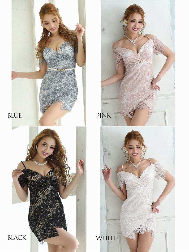 【一部予約販売】キャバ ドレス キャバドレス ミニドレス ミニ キャバクラドレス キャバクラ パーティードレス セクシー 大きいサイズ 韓国ドレス 韓国 大人 総レース オープンショルダー 袖付 タイト ワンカラー ナイトドレス カシュクール ラウンジ RyuyuChick