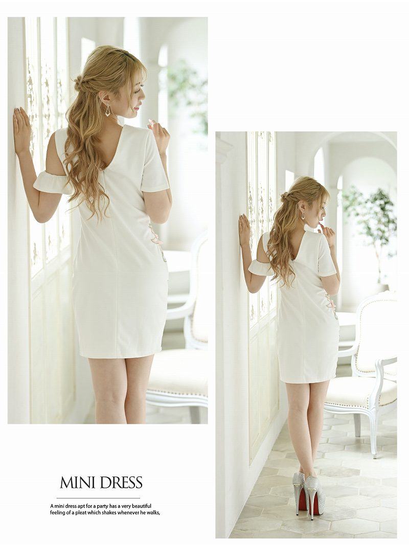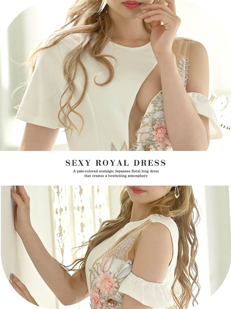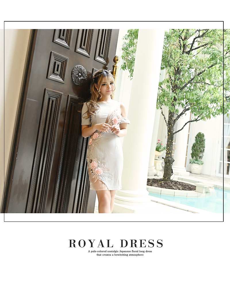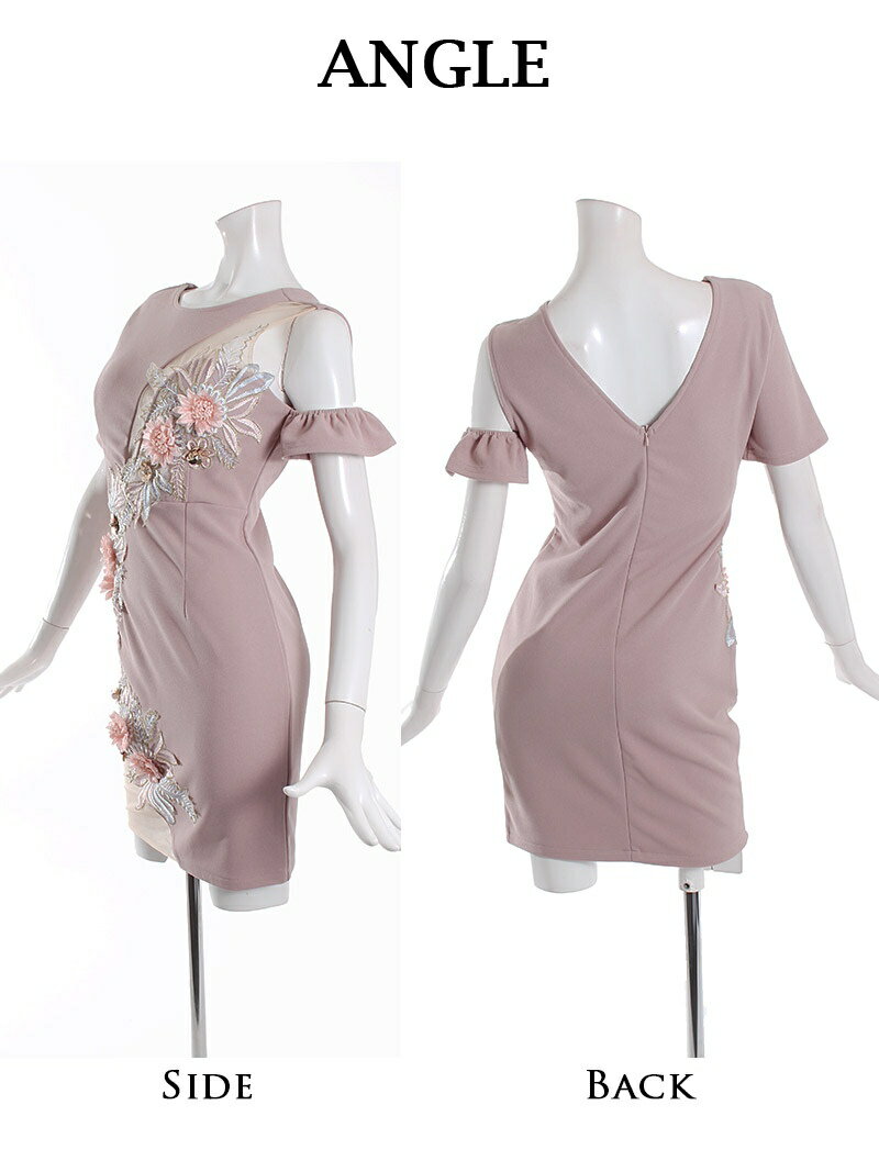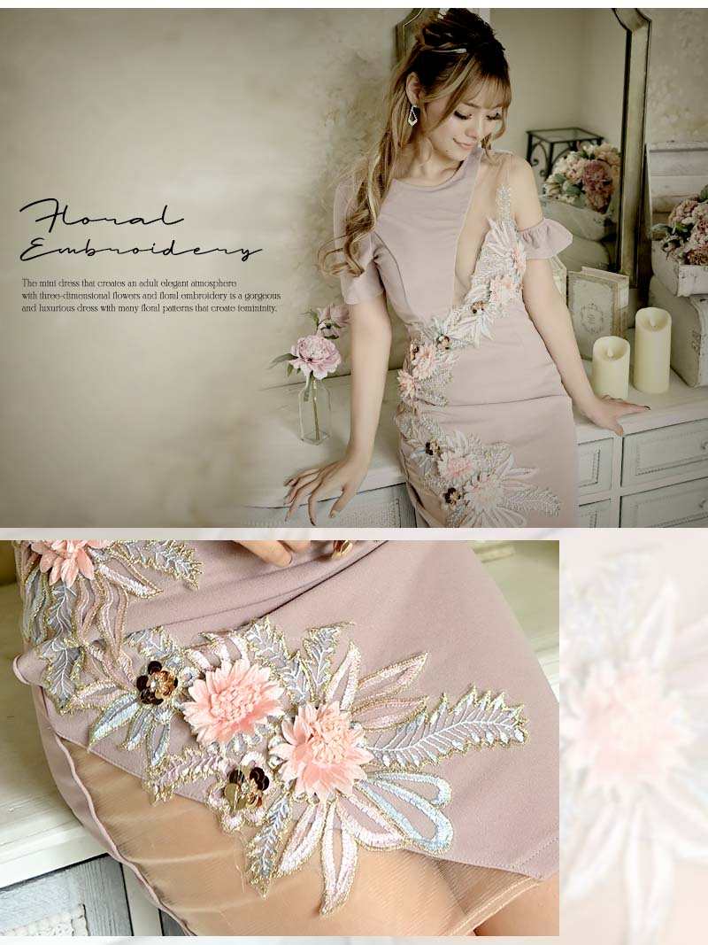キャバ ドレス キャバドレス ミニドレス ミニ キャバクラドレス キャバクラ パーティードレス セクシー 韓国ドレス 韓国 ナイトドレス ミニ 立体フラワー 花柄刺繍 アシンメトリー オフショル メッシュ 肌魅せ 華やか Ryuy