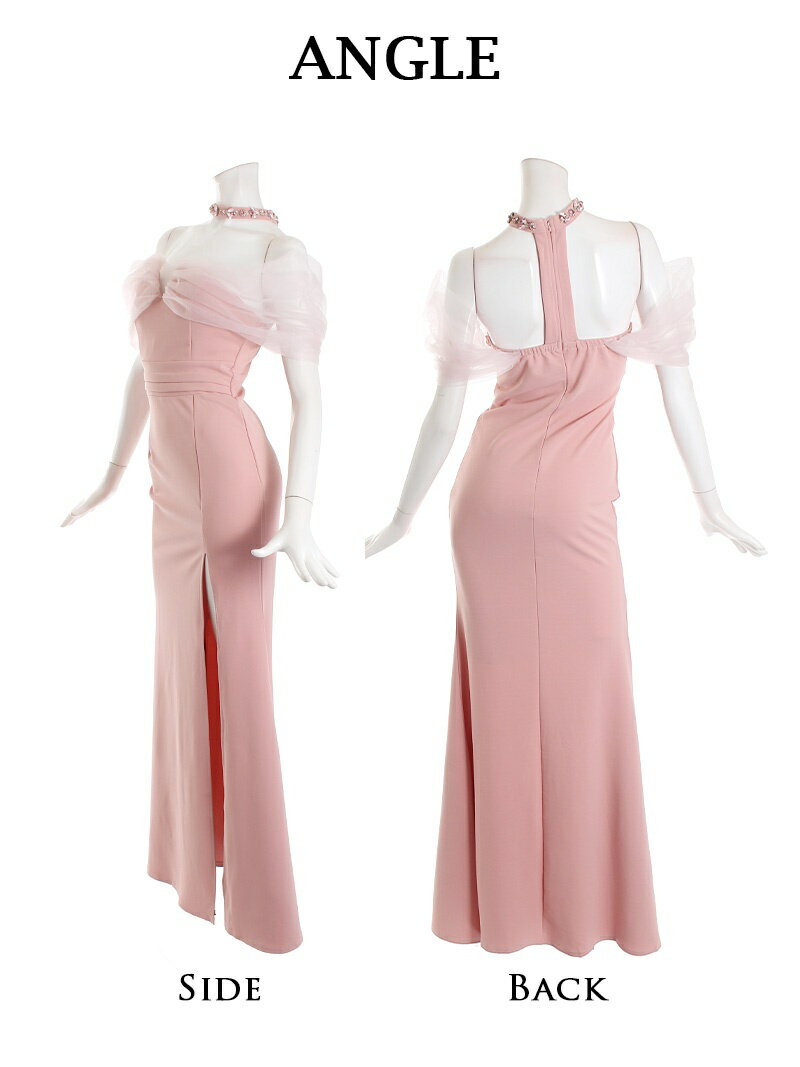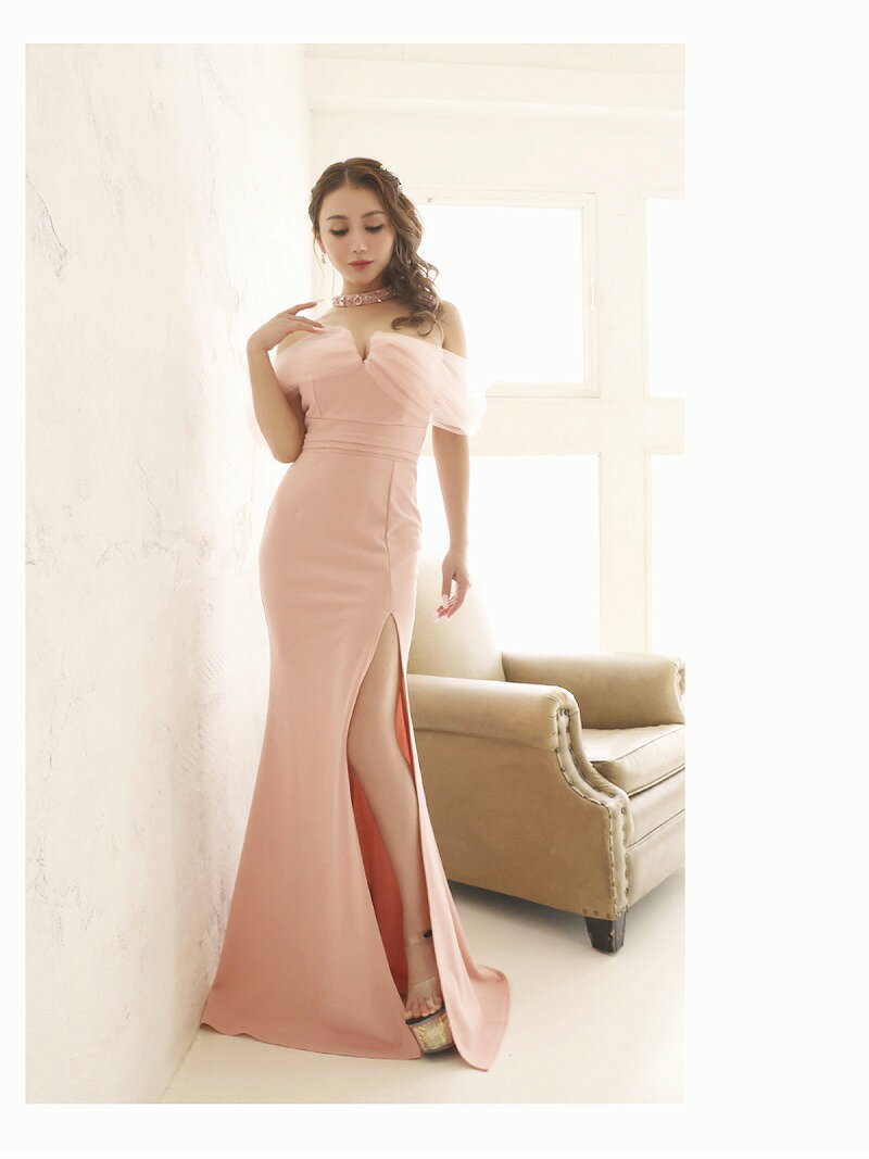 キャバ ドレス キャバドレス ロングドレス ロング キャバクラドレス キャバクラ パーティードレス セクシー 韓国ドレス 韓国 ロング スリット マーメイド 大きいサイズ ピンクビジュー オーガンジー 袖付き オフショル 二の腕カバー 華やか Ryuyu ゆきぽよ あす楽 送料無料