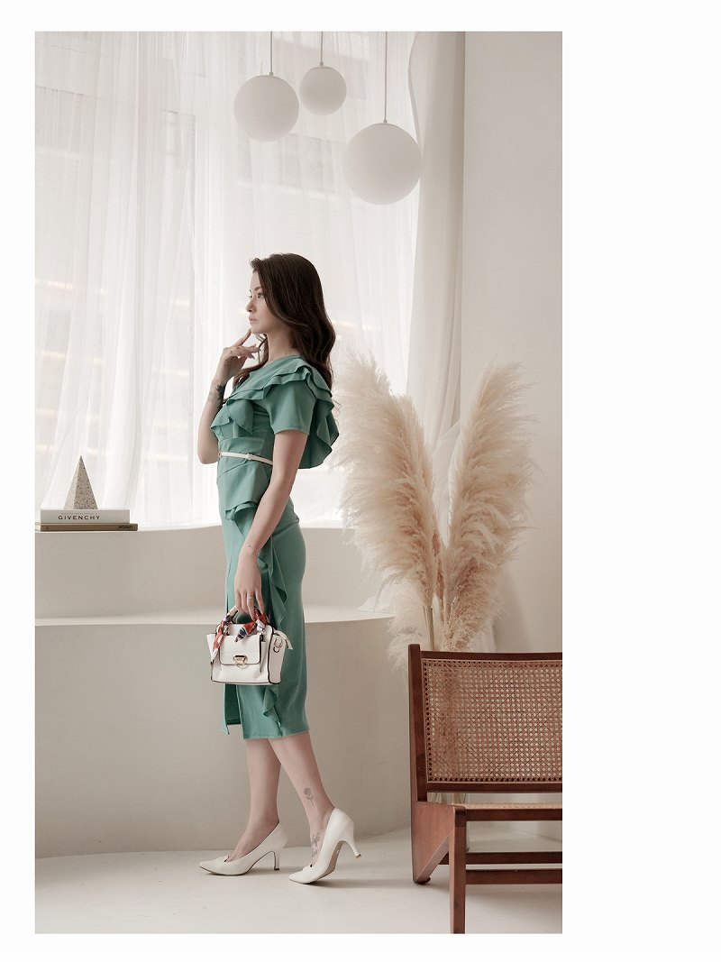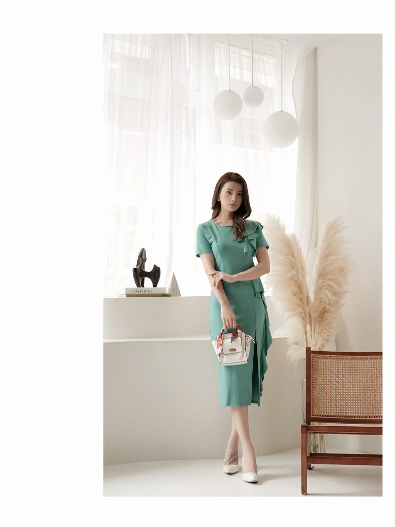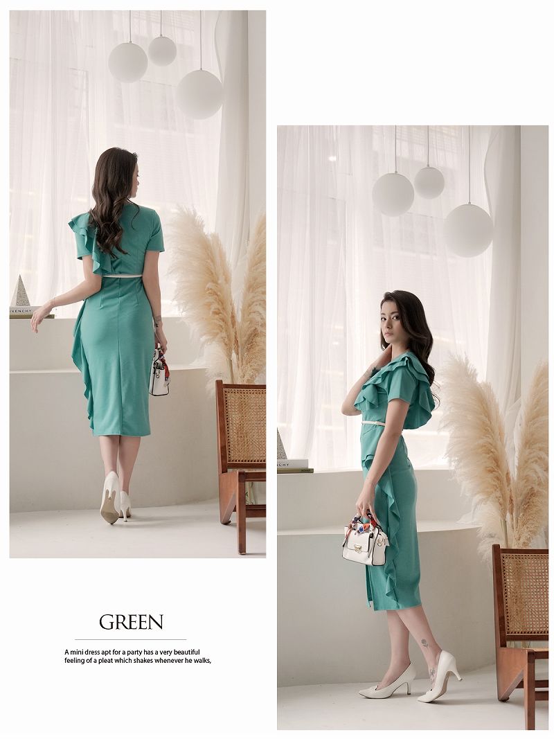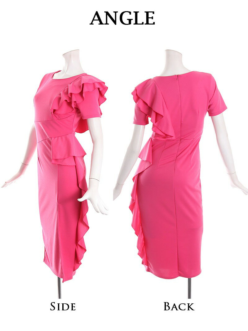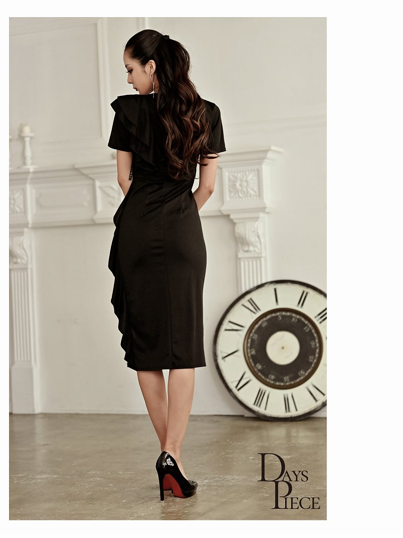 キャバ ワンピース ワンピ キャバワンピース キャバワンピ レディース パーティードレス ミモレ丈 フリル 袖付き ワンピース ワンカラー スリット アシンメトリー シンプル 上品 sexy DaysPiece KANO(ThePink) 大きいサイズ 可愛い きれいめ あす楽 送料無料