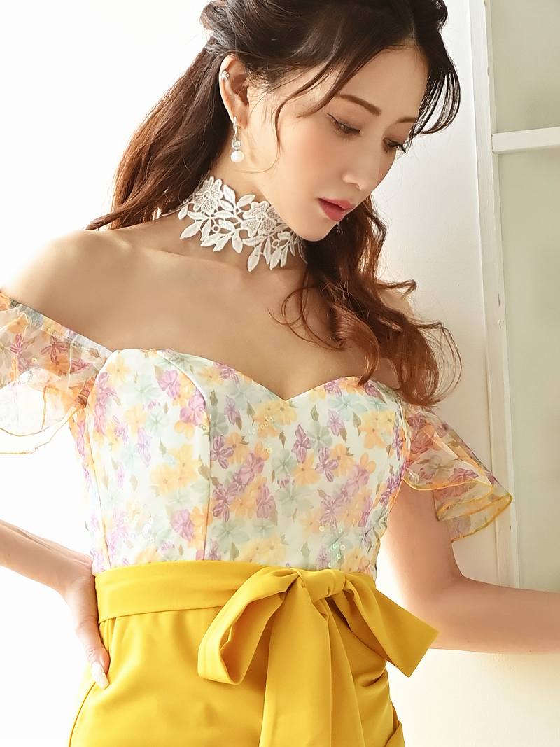 キャバ ドレス キャバドレス ミニドレス ミニ キャバクラドレス キャバクラ パーティードレス セクシー 韓国ドレス 韓国 黄色 紫 オフショル 夏 花柄 タイト 高級 かわいい ブランドドレス キャバ嬢 Belsia 大きいサイズ 可愛い きれいめ あす楽 送料無料