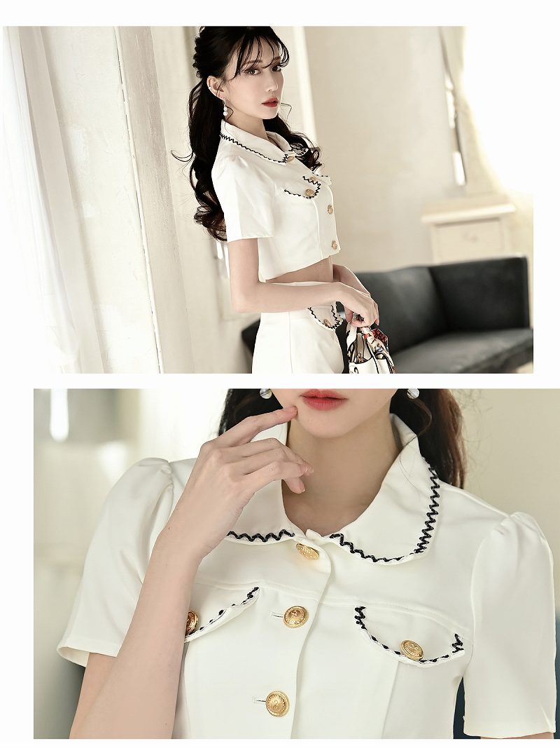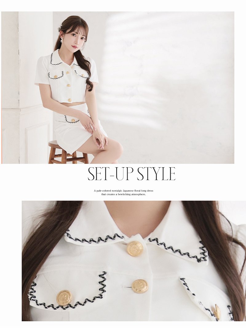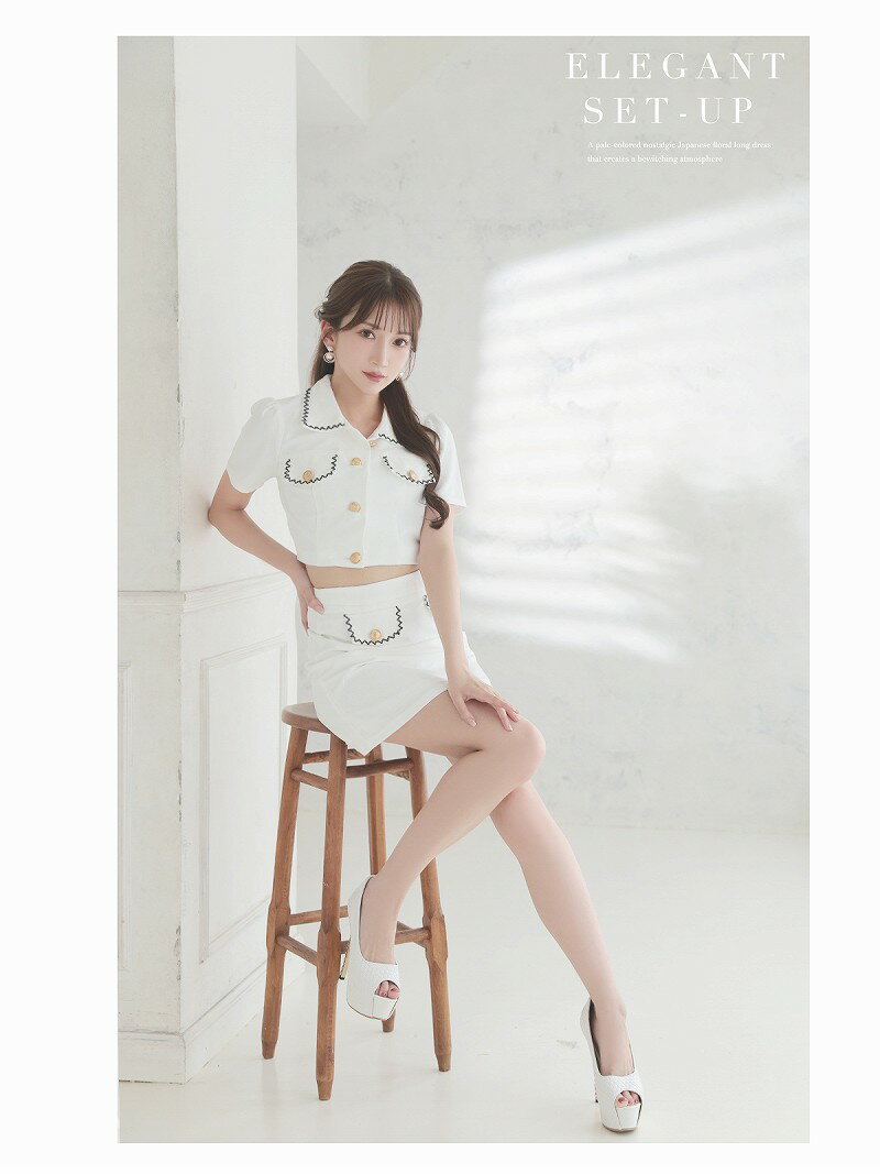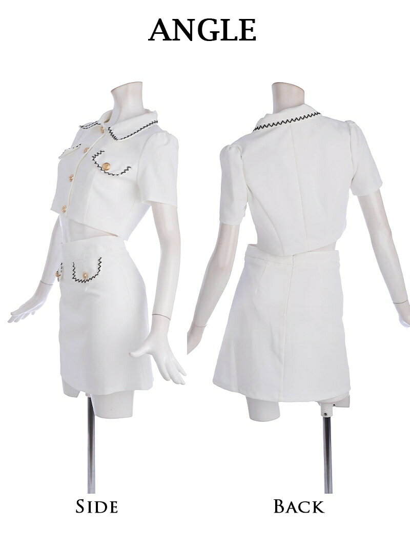 キャバ ドレス キャバドレス セットアップ 2ピース キャバクラドレス キャバクラ パーティードレス セクシー 韓国ドレス 韓国 パイピング セットアップ 同伴 ミニ丈 サマースーツ 韓国風 ガーリー 上下セット 半袖 襟付き Belsia 加賀美早紀 あす楽 送料無料