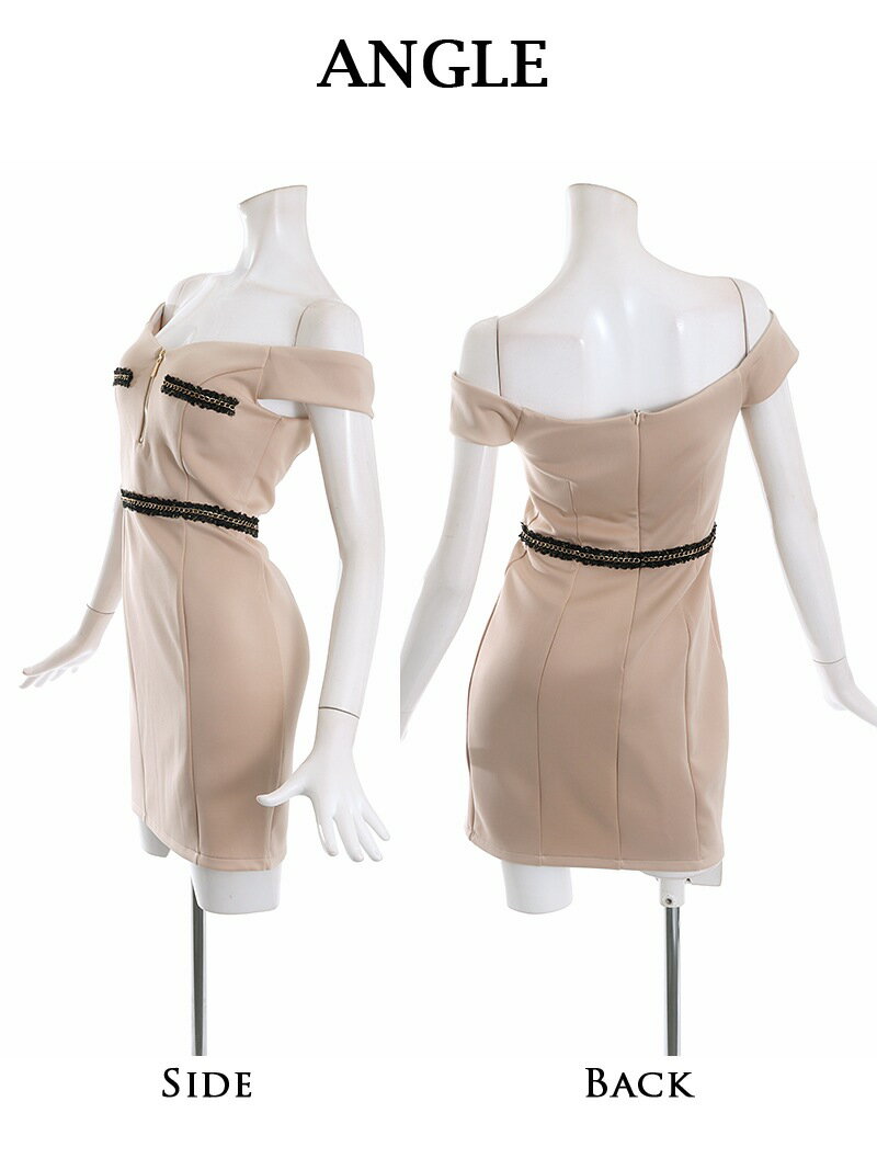 キャバ ドレス キャバドレス ミニドレス ミニ キャバクラドレス キャバクラ パーティードレス セクシー 韓国ドレス 韓国 オフショル チェーンパイピング バストジップドレス ミニドレス タイト ストレッチ 美脚効果 デコルテ 小顔効果 パイピング Ryuyu あす楽 送料無料