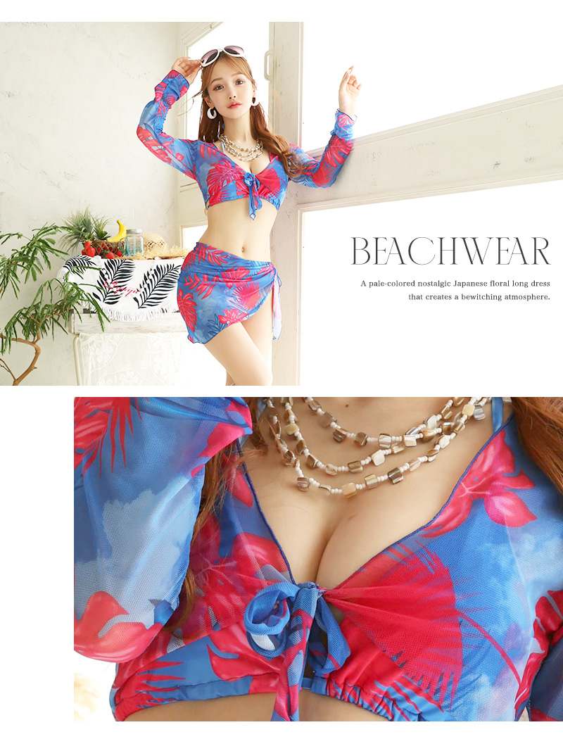 水着 ビキニ レディース レディース水着 セクシー モノキニ エロ キャバ水着 キャバ 派手柄 インポート 水着 パレオ付き 体型カバー ビキニ カラフル ボタニカル 4点セット 羽織 Ryuyu ビーチ ビーチウェア ビーチグッズ 海 プール 海水浴 あす楽 送料無料