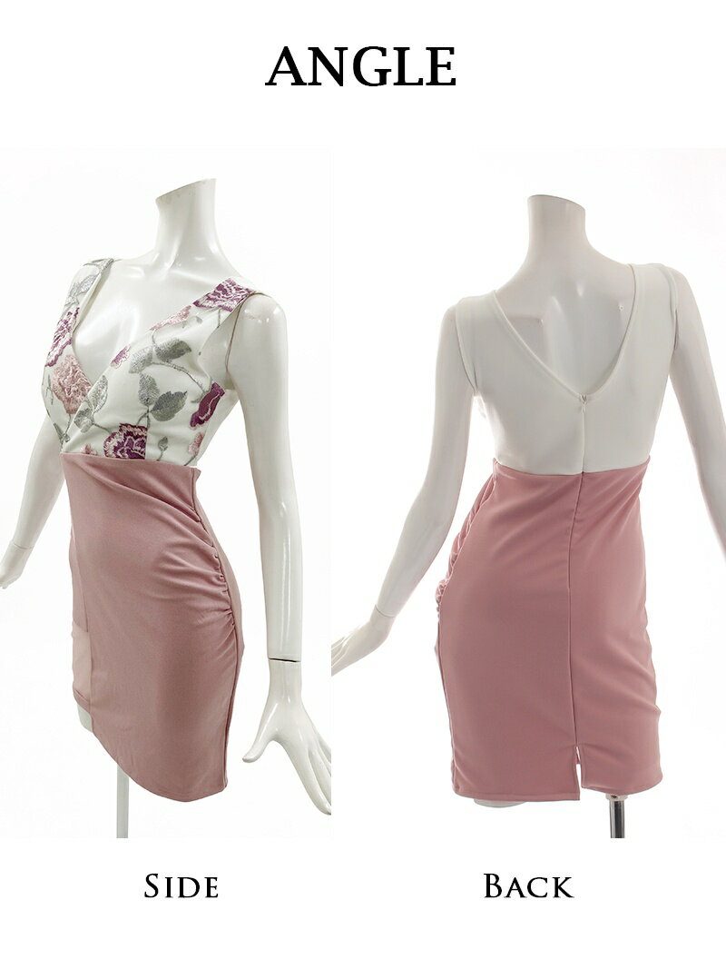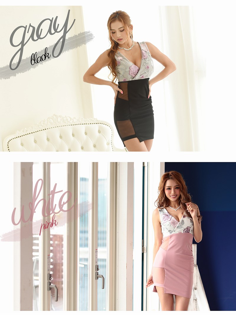 【訳ありアウトレット】キャバ ドレス キャバドレス ミニドレス ミニ キャバクラドレス キャバクラ パーティードレス セクシー 韓国ドレス 韓国 ナイトドレス タイト 谷間見せ バイカラー ノースリーブ ギャザー 激安 プチプラ 透け 花柄 RyuyuChick KAREN あす楽