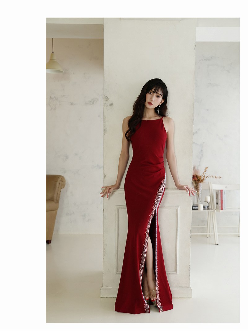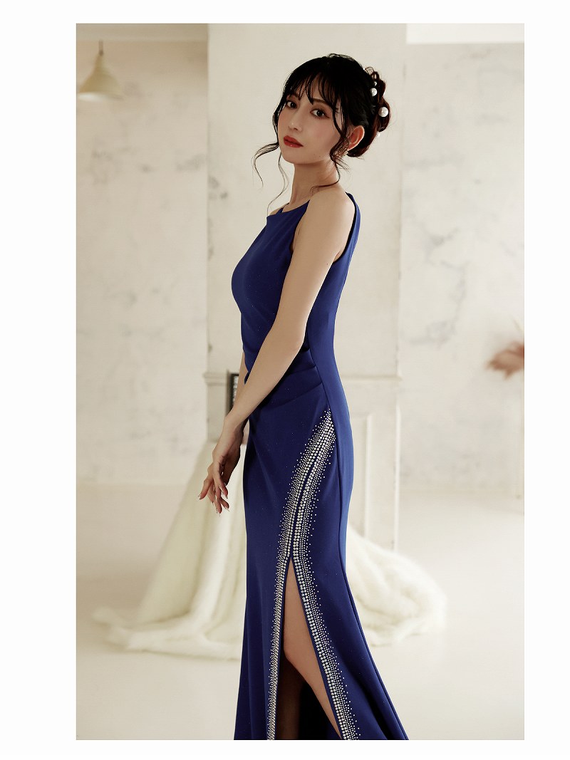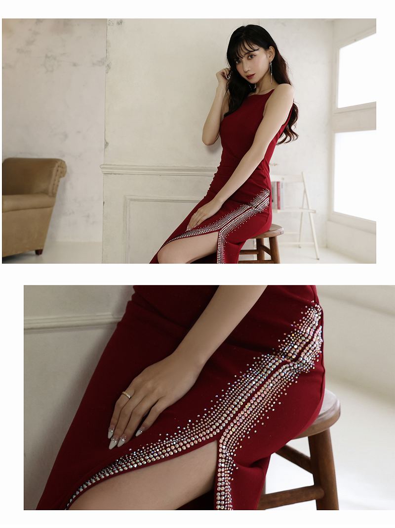 キャバ ドレス キャバドレス ロングドレス ロング キャバクラドレス キャバクラ パーティードレス セクシー 韓国ドレス 韓国 ラメ スリット オーロラビジュー 華奢魅せ ウエストくびれ ストレッチ スタッズ付き サイドギャザー マーメイド イブニングドレス あす楽 送料無料