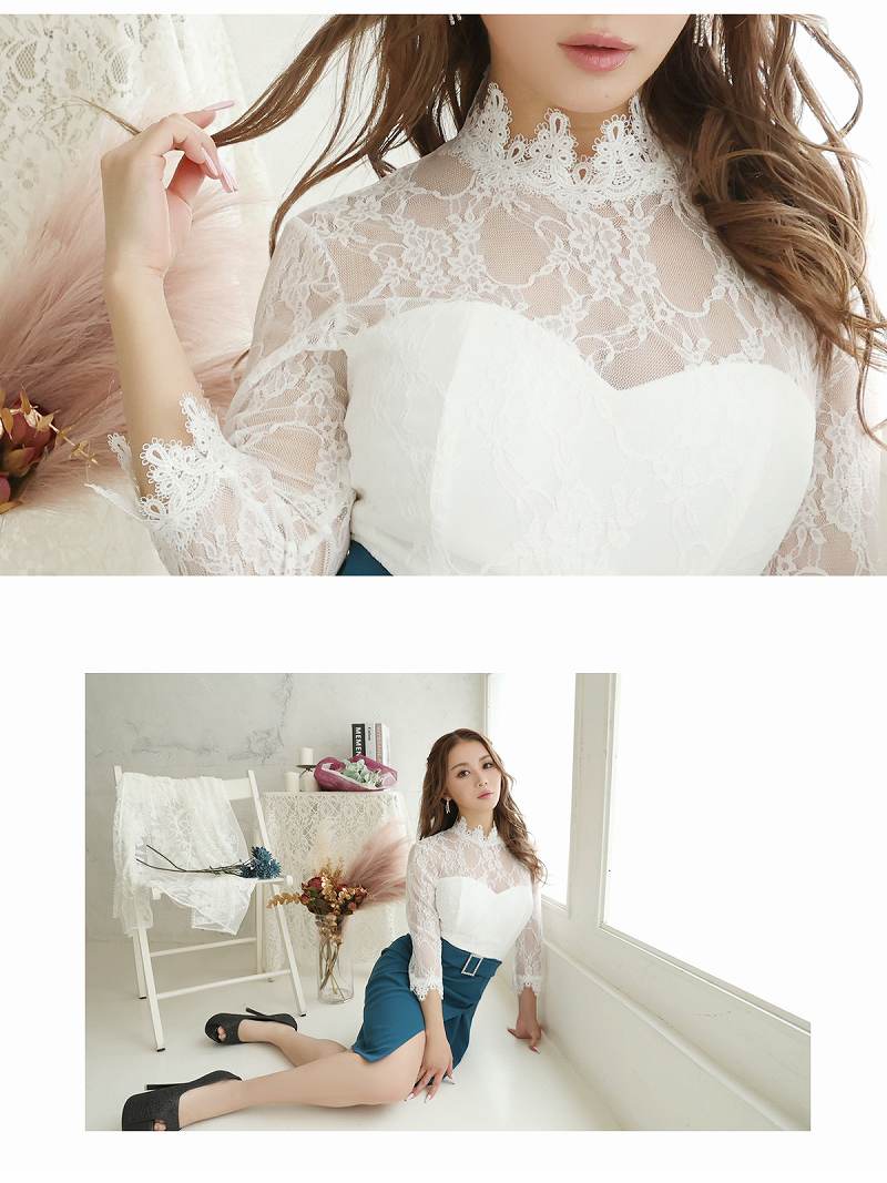 【訳ありアウトレット】キャバ ドレス キャバドレス ミニドレス ミニ キャバクラドレス キャバクラ パーティードレス セクシー 韓国ドレス 韓国 キャバ嬢 ハイネック タイト セクシー 細見え レース袖 バイカラー キャバドレス ラウンジ ホステス Ryuyu あす楽